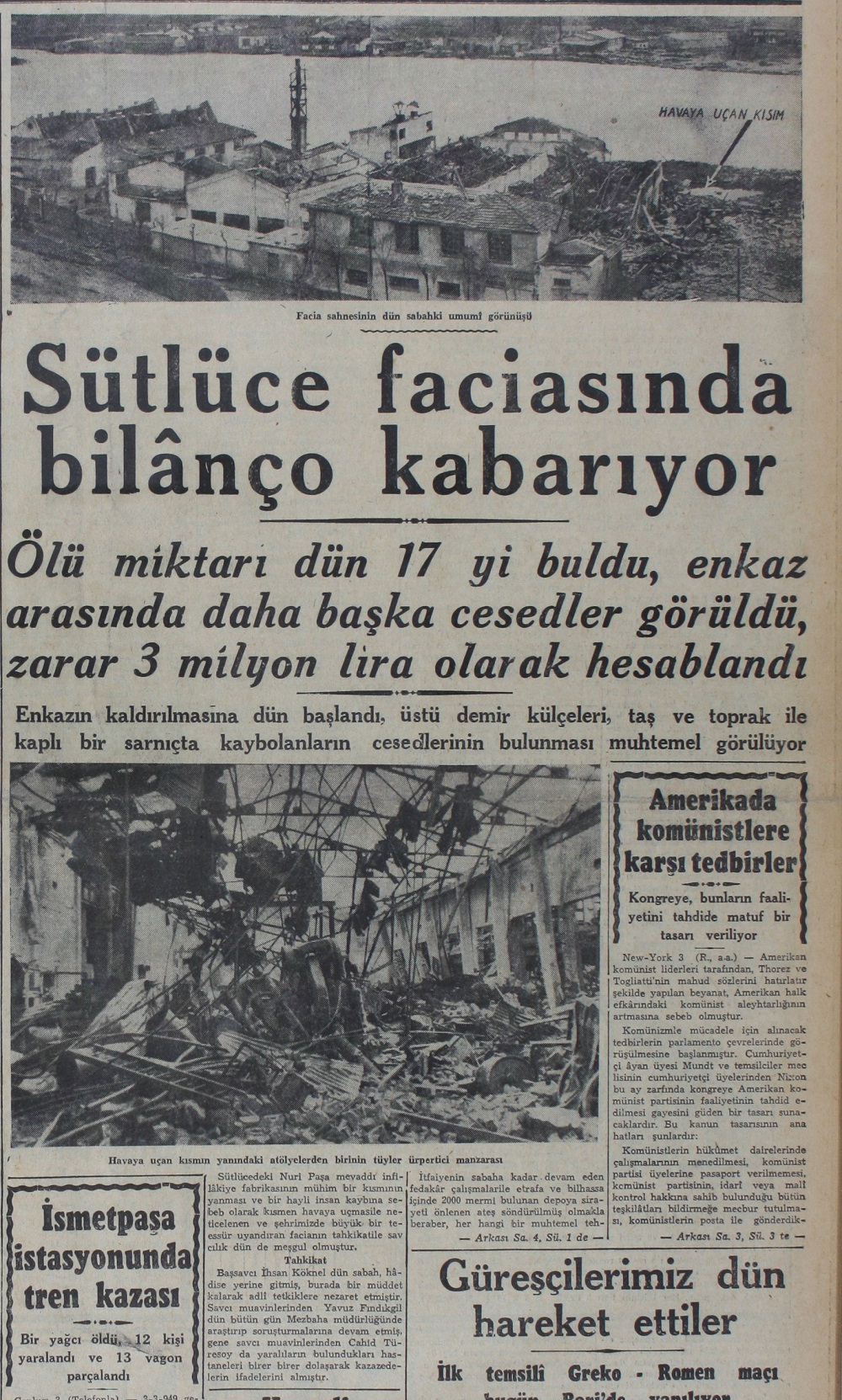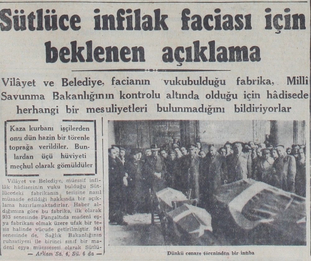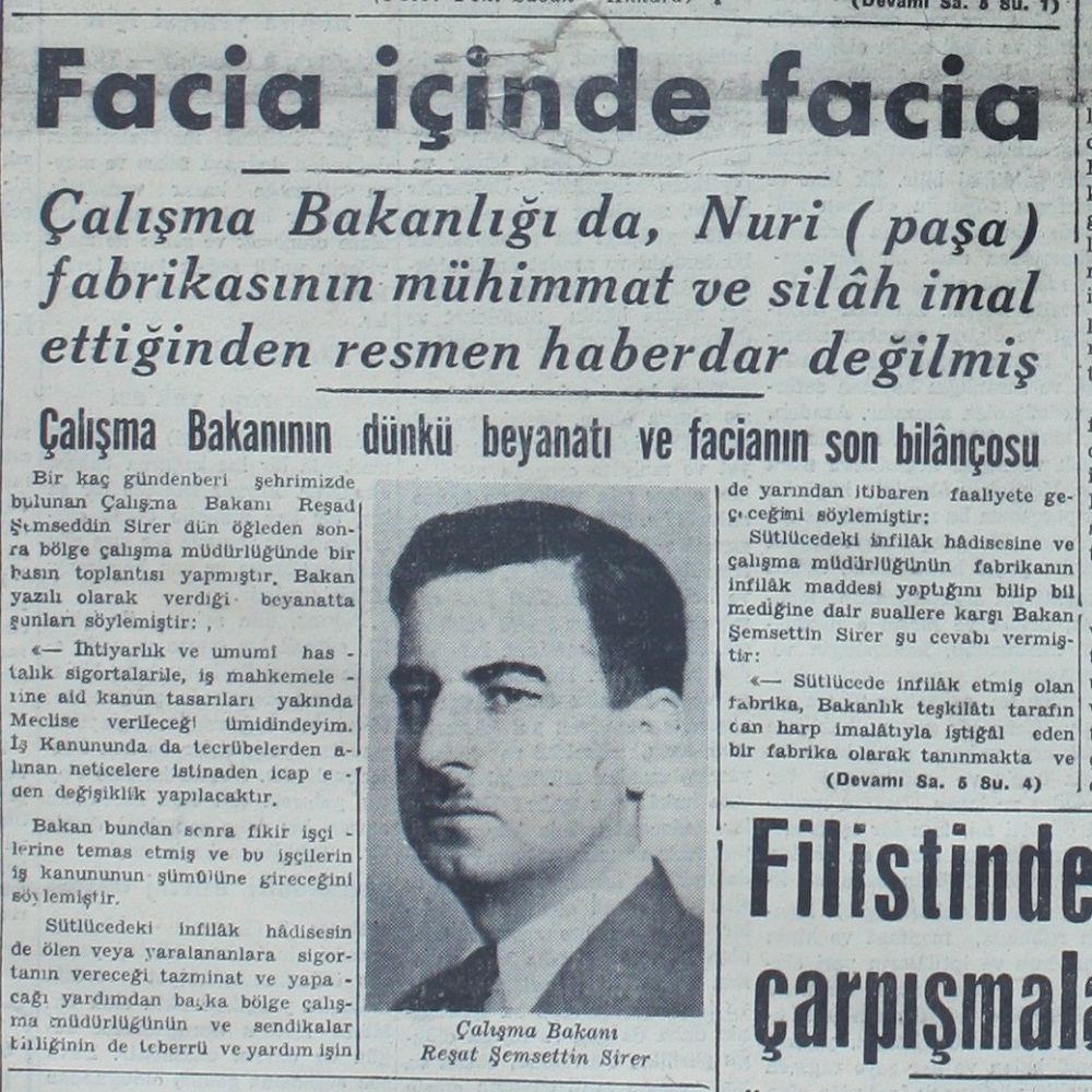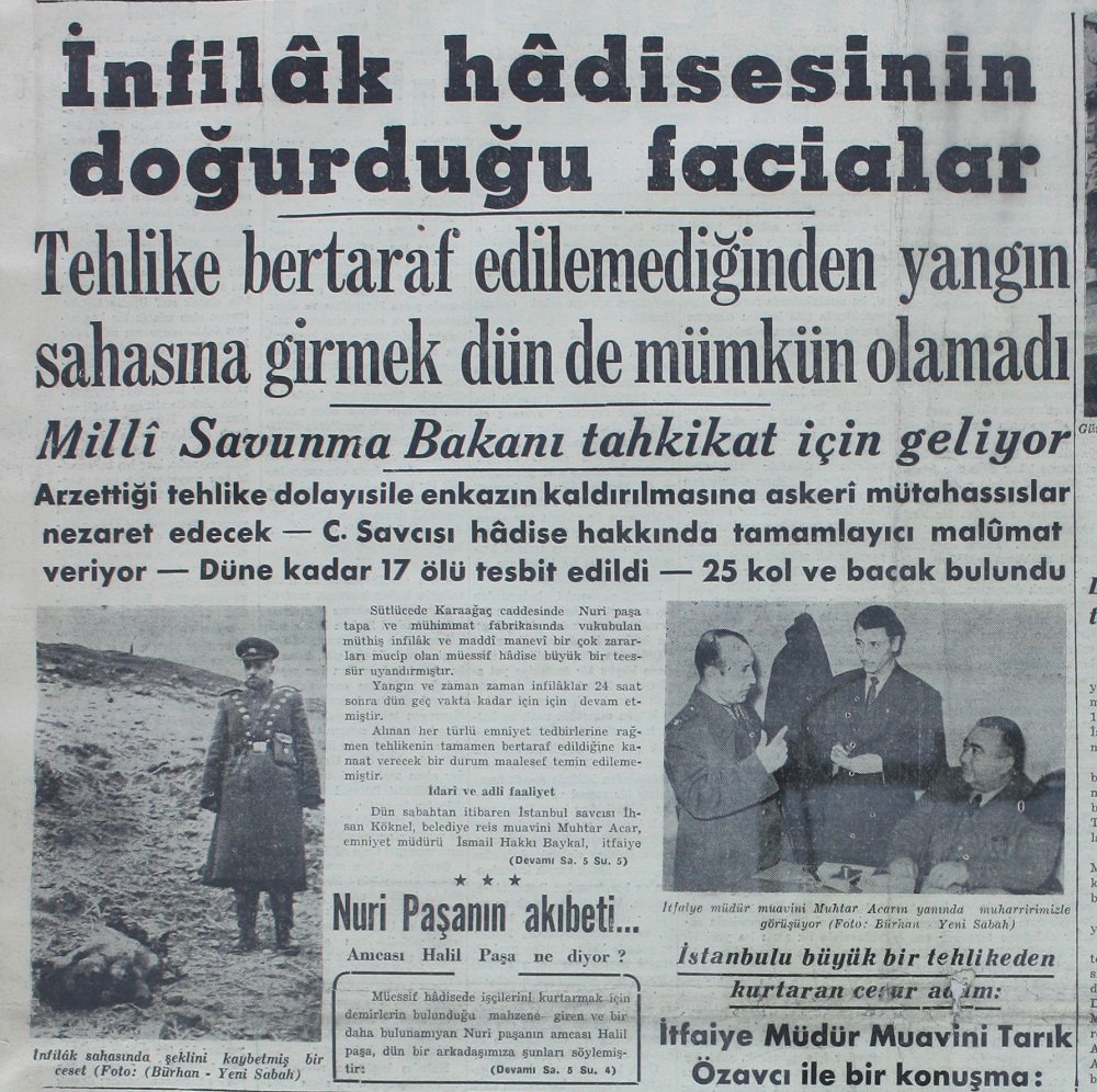 1949-cu il martın 1-də Nuru paşa Misirdən böyük həcmdə silah sifarişi alır. Lakin bir gün sonra Sütlücədəki Silah Fabrikində böyük partlayış baş verir. Silah anbarı havaya uçur. Ətrafdakı binalar yerlə-yeksan olur. Rəsmi sənədlərə görə, 27 nəfər həlak olur. Nuru paşanın cəsədi isə tikə-tikə olduğu üçün gec tapılır.