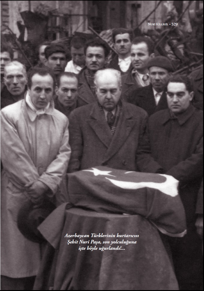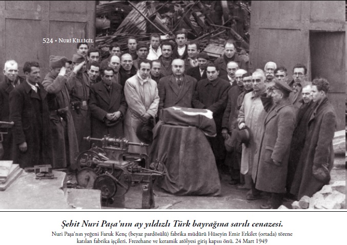 “İndiyə qədərki kitab və məqalələrdə Nuri Paşanın meyitinin tapılmadığı və boş tabutun dəfn edildiyi yazılıb. Halbuki, məsələ o cür deyil. Bizim ənənəmizdə boş tabutu dəfn etmək yoxdur, xristianlarda vardır. Bilirsiniz ki, bizdə meyit kəfənə sarınıb torpağa dəfn edilir. Partlayışdan təxminən iki həftə sonra Nuri Paşanın meyiti tapılıb, ancaq meyitin bəzi bədən üzvləri, məsələn, başı olmayıb. Ancaq bütün ailə üzvləri və fabrikin işçiləri Nurinin meyitini tanıyıblar. Dəfn mərasimi keçirərək cənazə namazı qılmaq istəyiblər. Maraqlıdır ki, martın 26-da Türkiyə İsraili tanıyan ilk ölkə olub. Nuri Paşanın dəfn mərasiminin böyük mitinqə çevriləcəyindən ehtiyat edən hökumət dəfn mərasiminə icazə vermədiyi kimi, namazın qılınmasına da əngəl olub. İstanbul Müftiliyi Nuri Paşanın cənazə namazının qılınmaması üçün birbaşa fitva verib. Bu, çox önəmli məlumatdır, heç bir yerdə yoxdur".