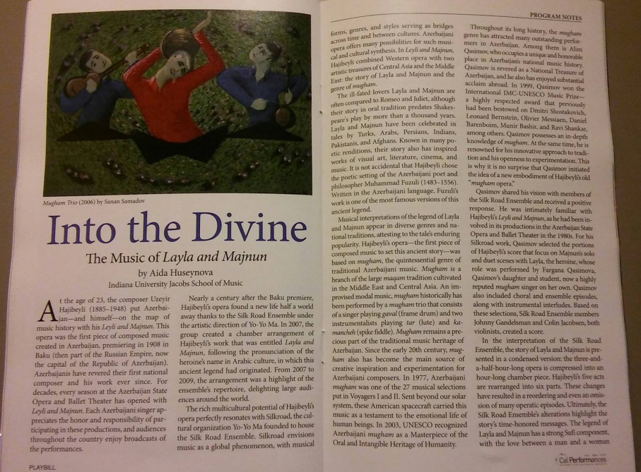Bu günlərdə ABŞ-ın bir neçə şəhərində böyük Azərbaycan bəstəkarı Üzeyir Hacıbəylinin “Leyli və Məcnun” operası yeni versiyada böyük uğurla təqdim olunub. Operadakı ifaları iştirakçılara Azərbaycanın Xalq Artisti Alim Qasımov və sənətkarın qızı, Əməkdar Artist Fərqanə Qasımova çatdırıb. Layihə müasir xoreoqrafiya sənətinin ən məşhur simalarından biri Mark Morrisin “Rəqs” qrupu tərəfindən gerçəkləşdirilib. İfalarda dövrümüzün ən məşhur violonçel ifaçısı Yo-Yo Manın rəhbərlik etdiyi “İpək Yolu” ansamblı da iştirak edib.