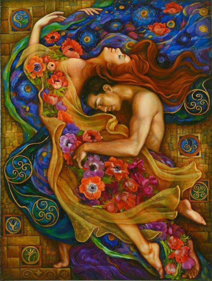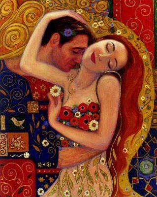 Ümumiyyətlə, Klimt əsərlərində kişiləri həmişə arxa planda saxlayırdı. Məsələn, məşhur "Öpüş" rəsmində kişi və qadın təsvir olunub, kişinin üzü görünmür, o, əyilib qadının yanağından öpür. Əsərdə bütün insanların arzu etdiyi saf eşq və ilahi hisslər tərənnüm olunur.