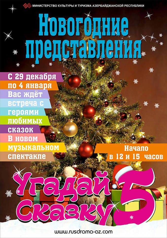 Rus Dram Teatrında dekabrın 29-dan yanvarın 4-dək “Nağılı tap-5” bayram tamaşası oynanılacaq. Bu tamaşa da gün ərzində iki seans saat 12-00 və 15-00-da nümayiş olunacaq.