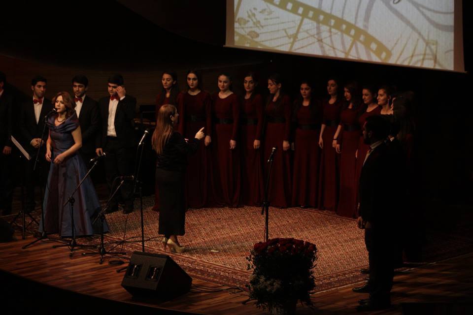 Musiqinin ardınca ekranda “Otel otağı” filmində Fəxrəddin Manafovla Mehriban Zəkinin birgə oynadıqları kadrlar təqdim olundu. Ekran qaralan kimi Mehriban Zəki səhnəyə çıxaraq