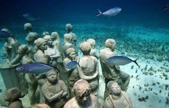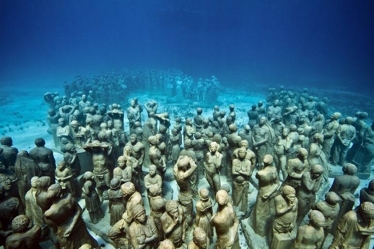 Su altında heykəlllər canlı insan təsiri bağışlayır, gözləri yumulu olsa da, sanki bu dəqiqə dil açıb danışacaqlar. Ceyson Teylorun suyun altında daşa döndərdiyi bu insan toplumu vücudlarında riflərin boy atmasına yer verməklə, quruda ömür sürən hər kəsi təbiəti və canlıları incitməməyə çağırır. Zaman keçdikcə üzəri mamır və riflərlə örtülüb tanınmaz hala düşən heykəllər özlərini dənizə, balıqlara qurban verir.