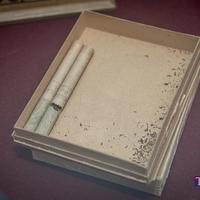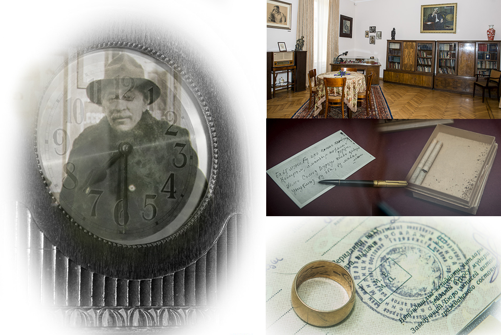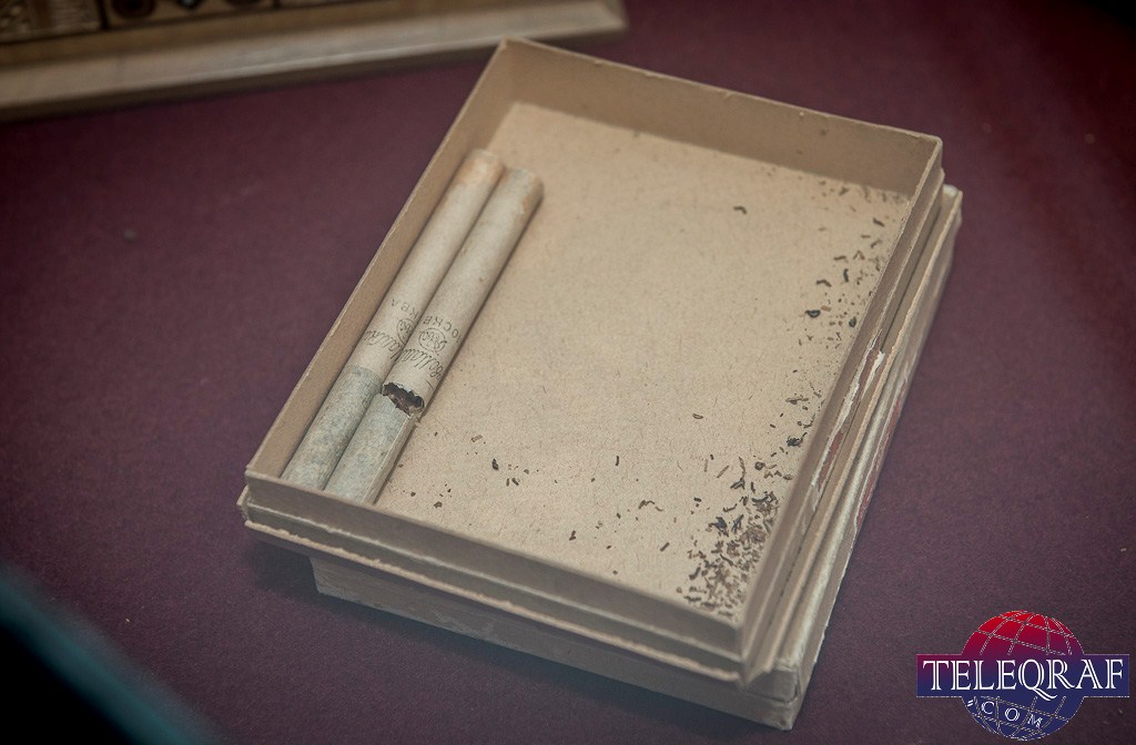 Masaya iki siqaret qutusu qoyulub, biri heç açılmayıb, digərinin içərisində isə iki gilə siqaret qalıb. Bundan başqa, masada yazıçıya Bolqarıstanda bağışlanmış qovluq, Ukrayna şairi Rılskinin hədiyyəsi olan bəzək qutusu, yazı ləvazimatı dəsti, telefon aparatı, əlyazması və ən çox sevdiyi bənövşə gülü ilə fotosu yer alır. Qəribəsi odur ki, şairin çox sevdiyi şəkildə özündən başqa bütün ailə üzvləri var...