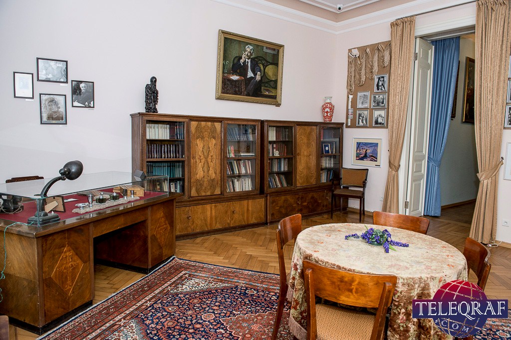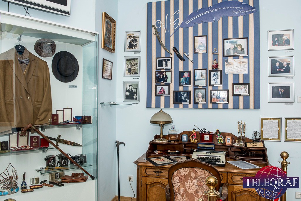 Ekskursiyamıza şairin kabinetindən başladıq. Bu otağa yazı masası, kitab şkafları, tumba, radio, şairin dramaturgiyasını əks etdirən iki stend, hədiyyə və rəsm əsərləri qoyulub.