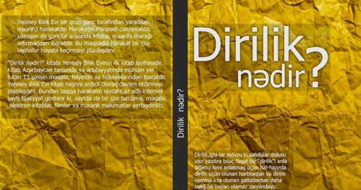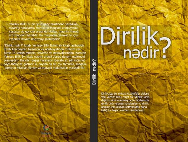 Xatırladaq ki, Yenisey Bilik Evi bir qrup gənc tərəfindən yaradılan maarifçi hərəkatdır. Hərəkatın məqsədi cəmiyyətdə, xüsusən də gənclər arasında kitaba, maariflənməyə olan marağı artırmaqdır. Hərəkat bu istiqamətlərdə bir çox layihələr həyata keçirməyi planlaşdırır. "Dirilik nədir?" kitabı Yenisey Bilik Evinin ilk kitab layihəsidir və hərəkat kitab nəşrlərini davam etdirməyi planlaşdırır. Həmçinin hərakatın idecafe.az adlı internet saytı da fəaliyyət göstərir ki, burada da oxucular blog yazıları, tərcümələr, maraqlı məlumat, klassiklərin yazıları ilə tanışa ola, həmçinin elektron kitab yükləyə və film izləyə bilərlər.