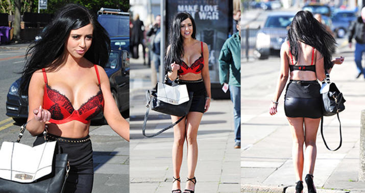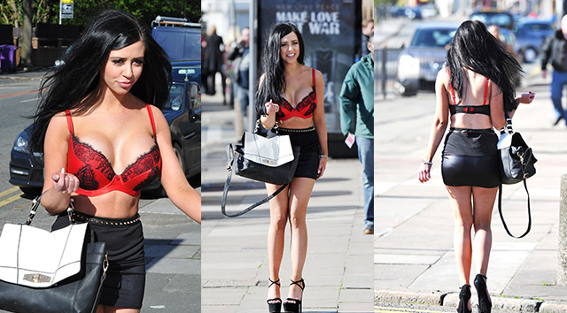 Üstünə qırmızı bir büstiyer geyen seksi gözəl mini yubkası və topuğlu ayaqqabıları ilə də bütün diqqəti üzərinə yönəldib.