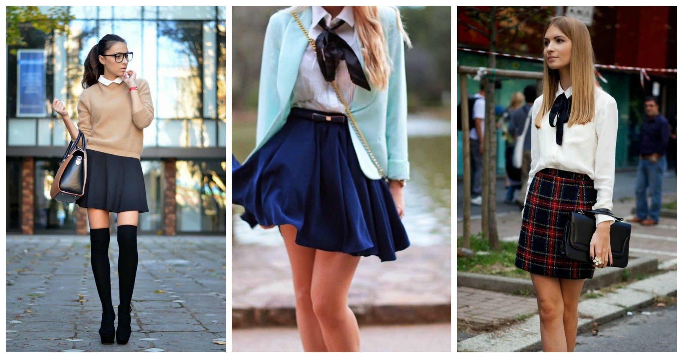 Qısa yubka: Dama-dama və damalı naxışların yenidən trend olması, ətəklərin dizdən bir qədər yuxarı qalxması məktəbə dönüş meylinin ən əhəmiyyətli parçalarından biridir.