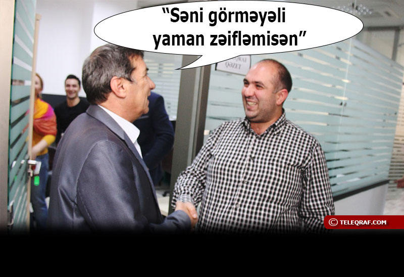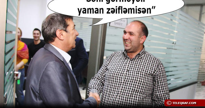 Müxbirimiz Bəxtiyar Məmmədli ilə zarafat edən aktyor onun çəkisinin çox olmasına işarə edərək, “səni görməyəli yaman zəifləmisən” dedi...