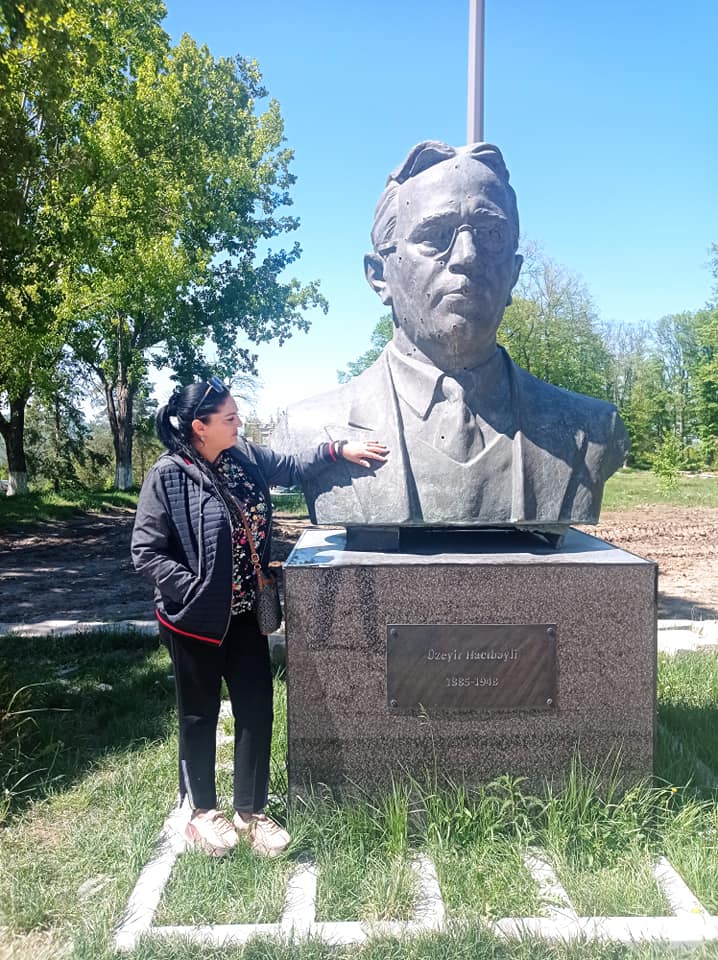 Əməkdar artist Şuşada dahi bəstəkar Üzeyir Hacıbəyovun güllələnmiş büstünü ziyarət edib və təəssüratlarını bölüşüb: “Azərbaycan musiqisinin peyğəmbəri dahi Üzeyir Hacıbəyovun büstünü ziyarət etdik. Kişilik məktəbinin bariz nümunəsi dahi Üzeyir Hacıbəyov büstünü bu hala salan, özünü qəhrəman sayan o şərəfsiz, özü də bilmir ki, kişiliyin ən kiçilmiş hərəkətini edib. Üzeyir Hacıbəyov bəşəriyyətin mənəviyyat, mədəniyyət, əxlaq simvoludur”.