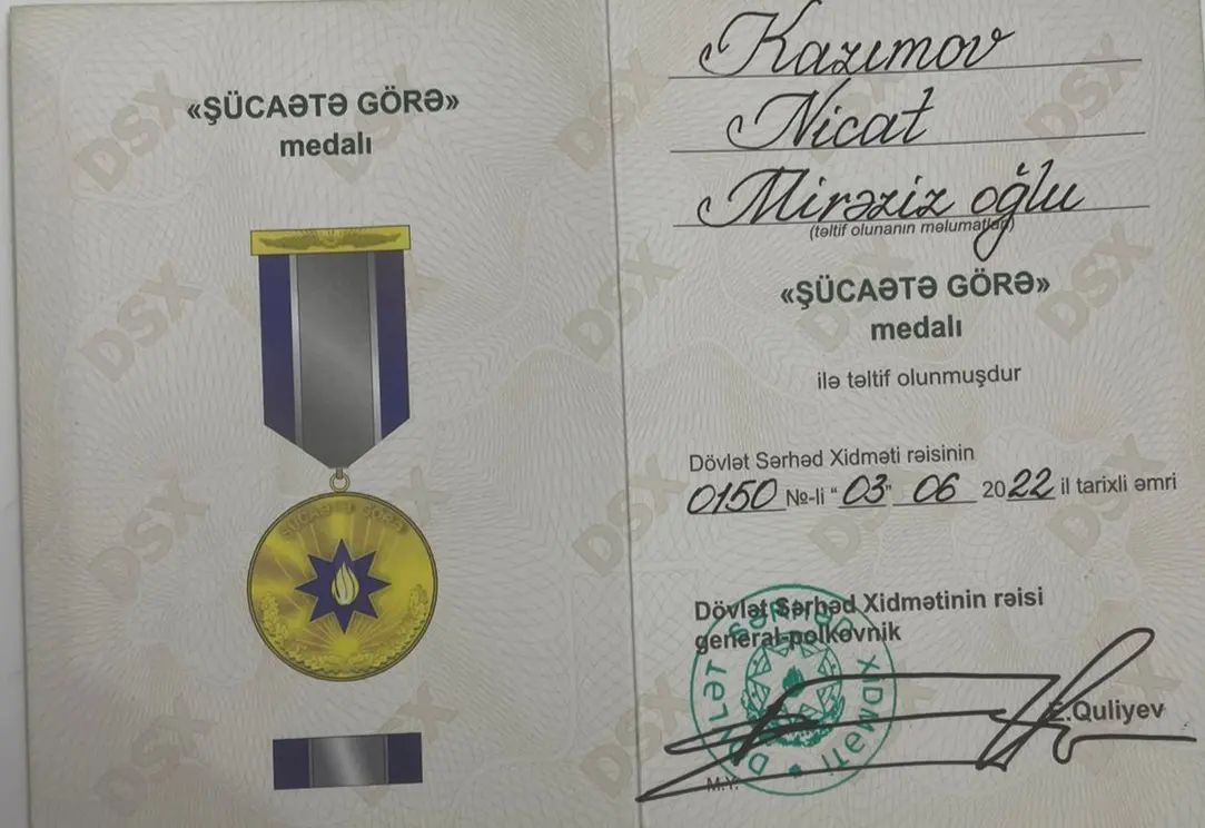 Əməkdar artist Nicat Kazımov "Şücaətə görə" medalı ilə təltif edilib.