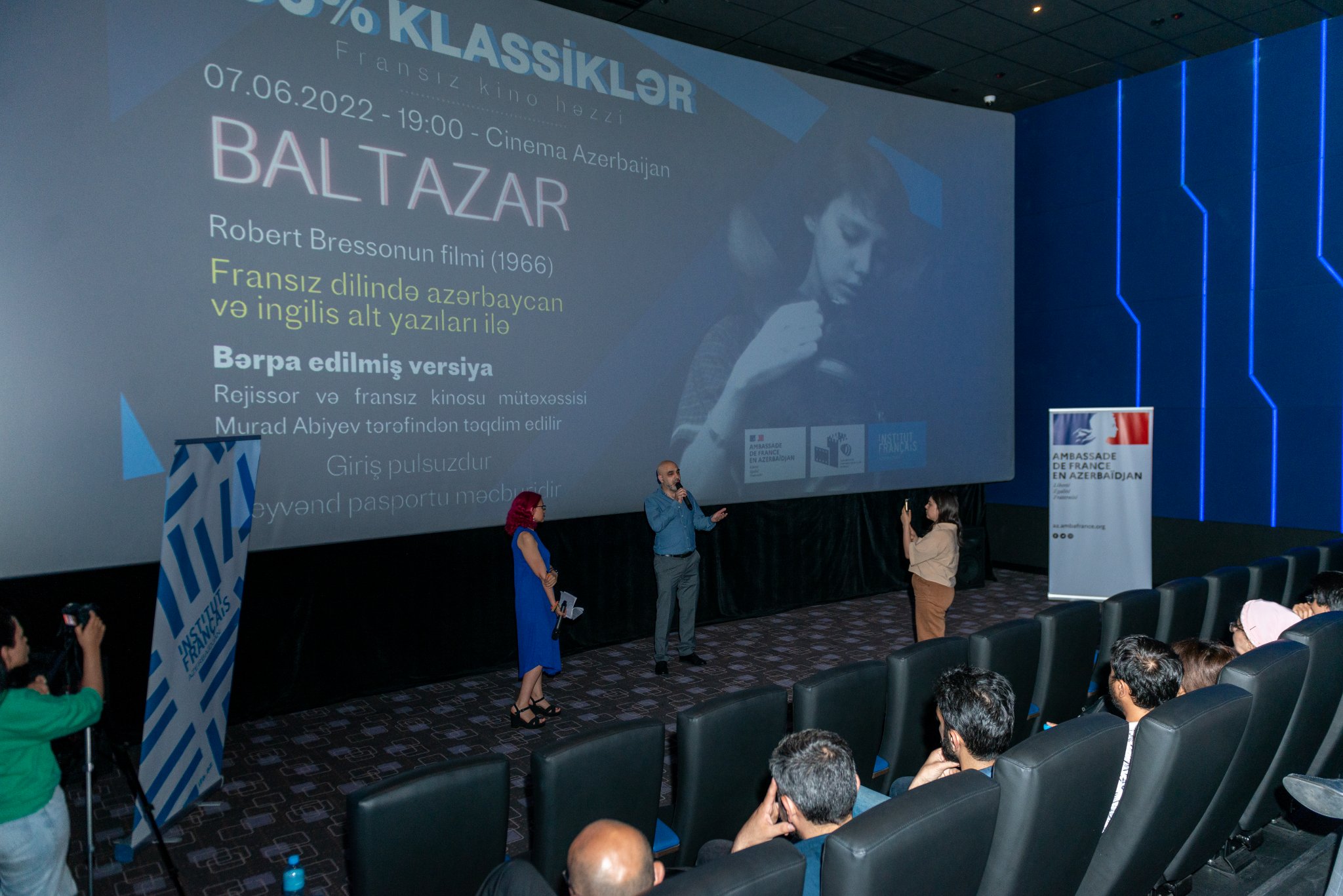 İyunun 7-də “Azərbaycan sinema” kinoteatrında “Fransız kino həzzi: 100% klassiklər” layihəsi çərçivəsində Rober Bressonun “Baltazar” filminin Azərbaycan dilində nümayişi baş tutub.