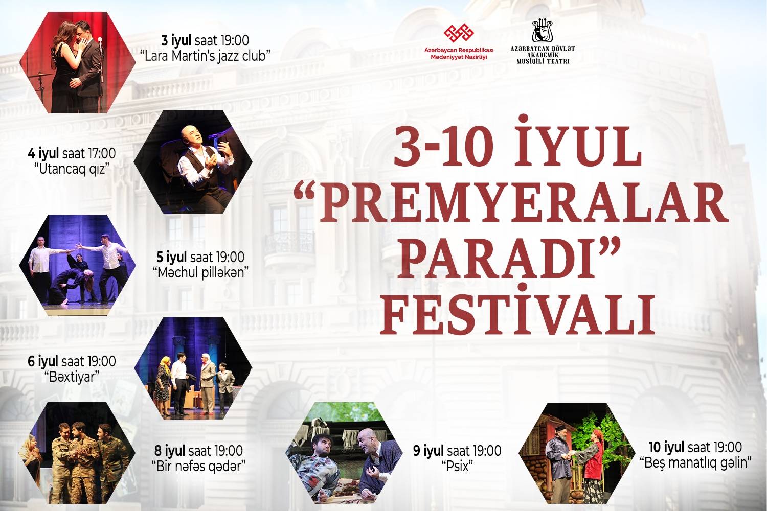 İyul ayının 3-dən 10-dək Akademik Musiqili Teatrda "Premyeraların paradı" Festivalı keçiriləcək.