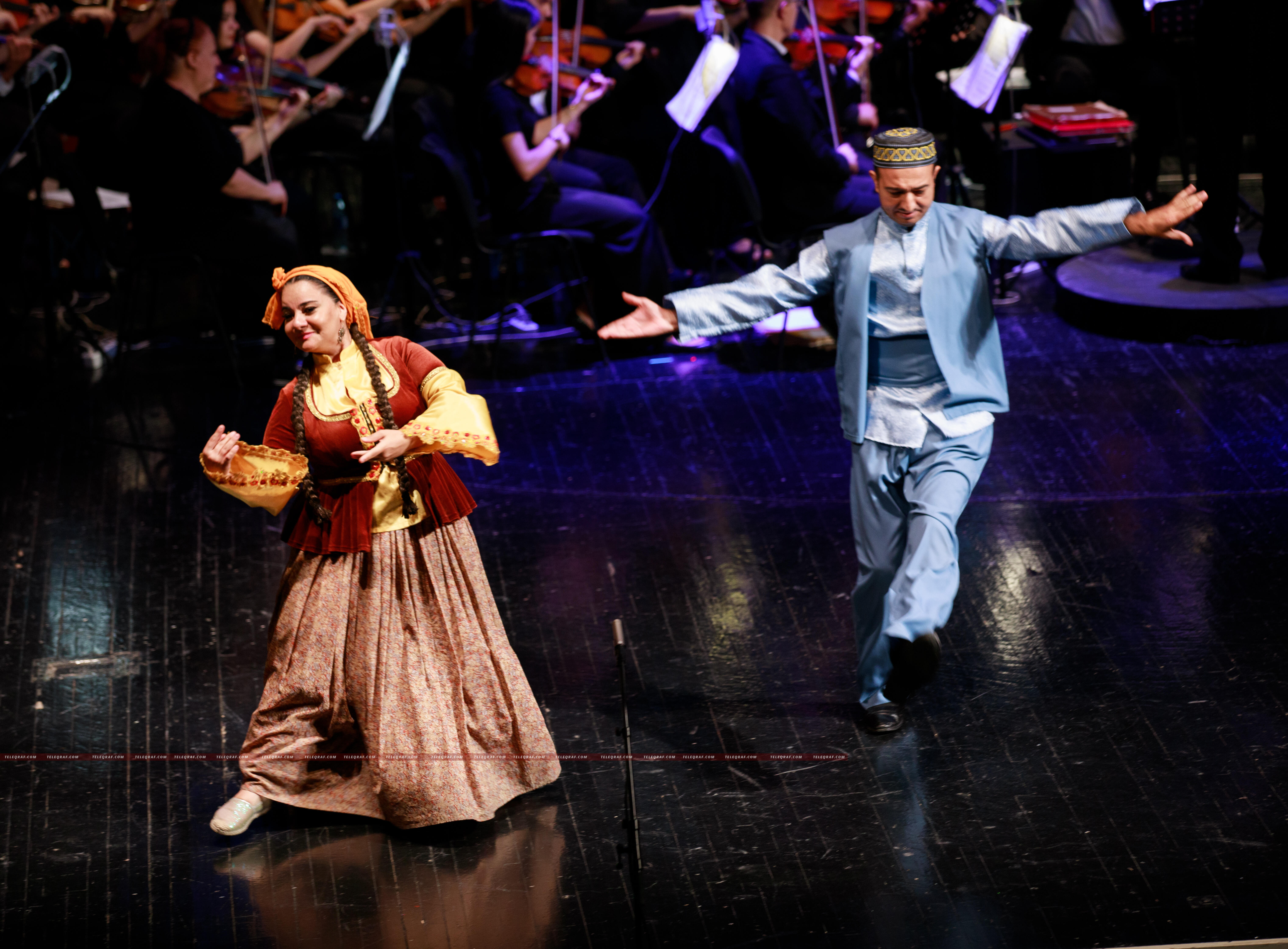 Duzlu-məzəli zarafatları ilə zalda əhval- ruhiyyə yaradan Xalq artisti İlham Namiq Kamal “Bəxtiyar” tamaşasındakı Ağabala obrazında konsert və rəqs nömrələrini, müxtəlif tamaşalarından balet kompozisiyaları özünəməxsus tərzdə təqdim edib.