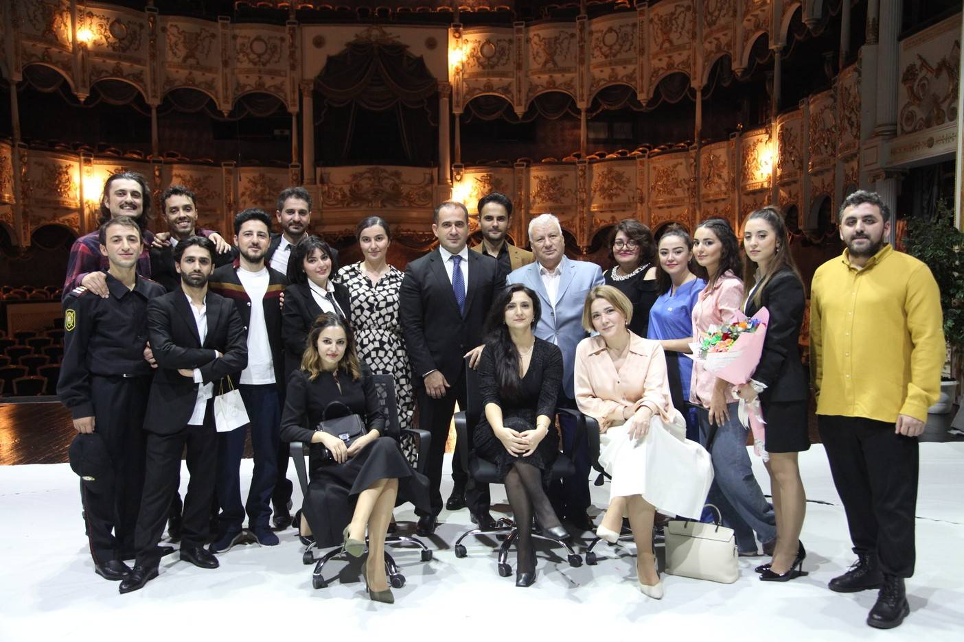 Premyerada Mədəniyyət naziri Anar Kərimov, Gənclər və idman naziri Fərid Qayıbov, Prezident Administrasiyasının Humanitar siyasət, diaspor, multikulturalizm və dini məsələlər şöbəsinin müdiri Fərəh Əliyeva, DİM-in Direktorlar Şurasının sədri Məleykə Abbaszadə, həmçinin ölkəmizdəki səfirlər, eləcə də tanınmış teatr xadimləri, incəsənət adamları iştirak edib.