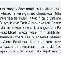 Fuad müəllimi yaxından tanıyan biri kimi Fuad müəllim belə hadisələrdə adının hallanmasından heç amma heç xoşlanmazdı. Ölməsəydi Azər müəllimin cənazəsində bəlkə də ilk sırada o durardı”.