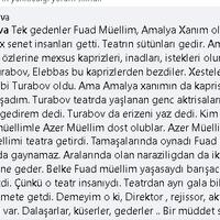 Sənət insanları emosional və duyğusal insanlardır. İstanbulda başqa teatrlarda da belə şeylər olur. Mənim çalışdığım teatrda möhtəşəm aktyor və aktrisalar da küsüb teatrdan gediblər. Hamınızın yaxından tanıdığınız Cihan Ünal, Nurseli İdiz və s. korifey sənətkarlar, hamınızın seriallardan tanıdığınız məşhurlar: Ufuk Özkan, Dolunay Soysert, Murat Daltaban, Hasibe Eren, Çağlar Çorumlu və başqaları bizim teatrdan küsüb getdi.