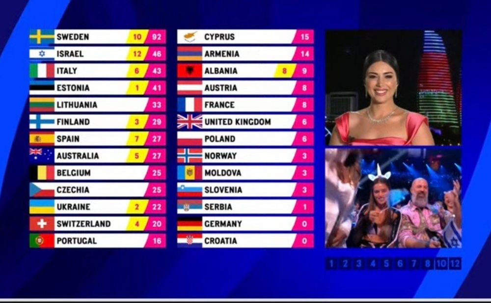 "Avroviziya 2023" mahnı müsabiqəsinin finalı üzrə səsvermələrin nəticələri açıqlanır.