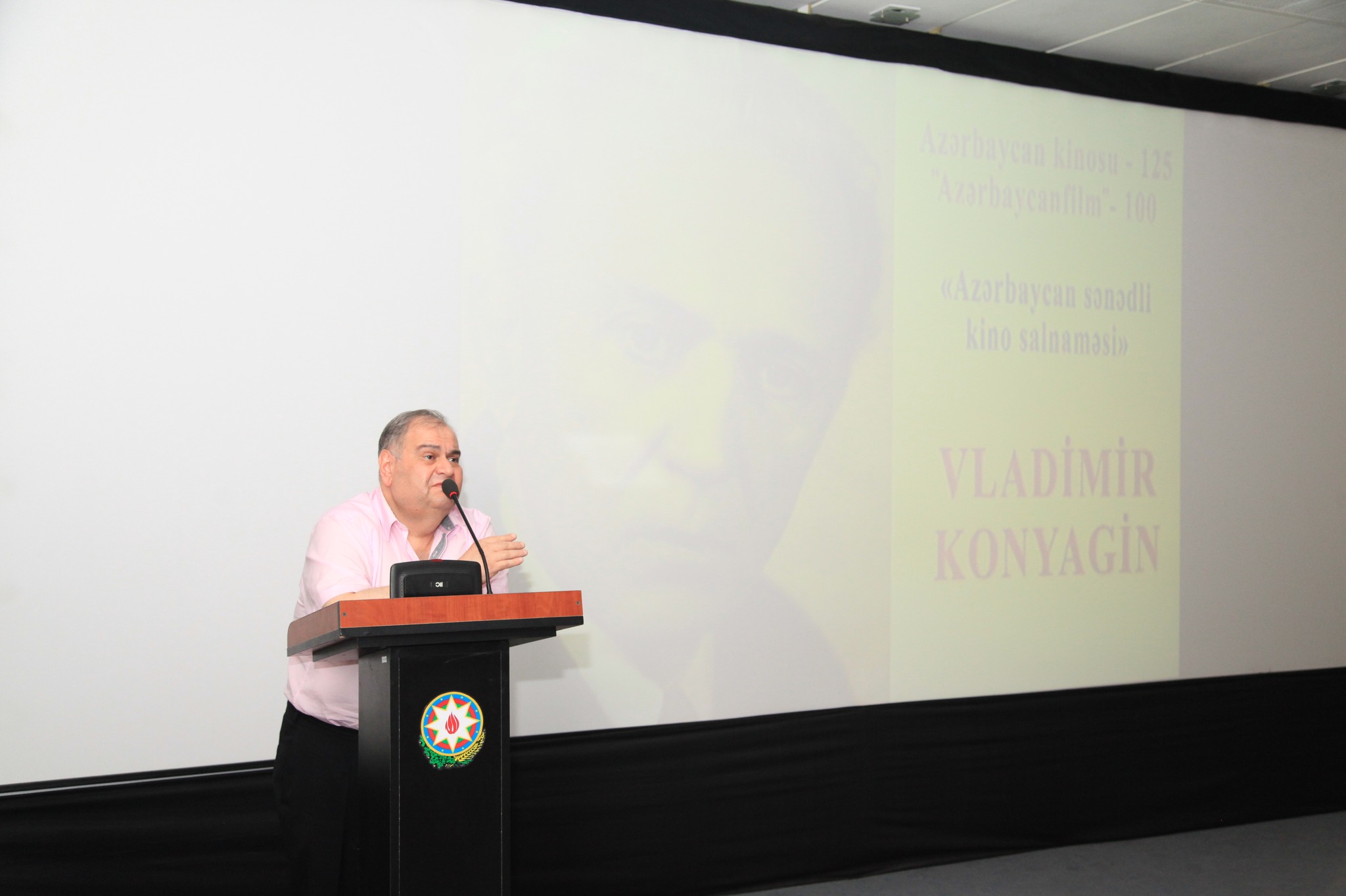 Tədbiri giriş sözü ilə Azərbaycan Dövlət Film Fondunun direktoru, Əməkdar incəsənət xadimi Cəmil Quliyev açaraq, Vladimir Konyaginin həyatı haqqında məlumatlar verdi, onun sənətə gəlişinin tarixçəsindən, çalışdığı filmlərdən və ümummilli lider Heydər Əliyevin iştirakı ilə xronikal materialların çəkilməsində xüsusi əməyinin olmasından bəhs etdi.