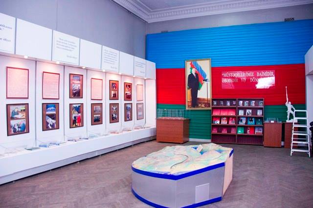 Sədi bəyin sözlərinə görə, muzeyin ekspozisiyası altı zalda nümayiş olunur: “Birinci zalda ümumi atributikadır və orada Azərbaycanın qədim zamanlardan XIX əsrə qədər olan tarixi göstərilir. İkinci zal XIX əsrin ikinci yarısı və XX əsrin əvvəlləri dövrünü əks etdirir. Üçüncü, yəni hazırda biz olduğumuz zal XX əsrin birinci yarısında Cənubi Azərbaycanda olan milli-azadlıq hərəkatlarına aid olan eksponatları sərgiləyir. Dördüncü zalda Azərbaycanın repressiya illərində və Böyük Vətən Müharibəsi illərindəki tarixi nümayiş olunur, beşinci zal XX əsrin axırlarında Azərbaycan milli-azadlıq hərəkatına, Qarabağ müharibəsinə həsr edilib. Sonuncu, altıncı zal müstəqil Azərbaycan Respublikasının tarixi və ümummilli lider Heydər Əliyevin fəaliyyəti əks etdirir”.