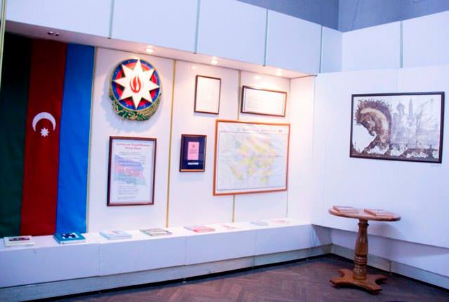 Digər zalda sərgilənən üçrəngli bayraq diqqətimizi cəlb edir. Sadə bir qadının əllə tikdiyi bu bayrağın çox maraqlı tarixçəsi var. 1989-cu ildə may ayının 28-də Azərbaycanda fövqəladə vəziyyət və komendant saatı rejiminin olduğu vaxtda milli azadlıq hərəkatının bir neçə fəalı Xalq Cümhuriyyətinin üçrəngli bayrağını saat 11 radələrində Qız Qalasında ucaldır. Sadə azərbaycanlı qadının əli ilə tikdiyi bu bayraq xalq hərəkatının simvoluna çevrilir. Muzeyin bir maraqlı eksponatı var ki, həcminin böyüklüyündən sözügedən heç bir zalda nümayiş oluna bilmir. Onun yeri Muzey Mərkəzinin birinci mərtəbəsindədir. Bu 1900-cu ilə aid “Universal” tipli mətbəə çap maşınıdır. Deməli, 1920-ci ilin dekabrında Azərbaycanın Quba qəzasının kəndliləri VIII Ümumrusiya Sovetlər qurultayının ünvanına bir vaqon alma sovqatı göndərirlər. Lenin hədiyyə üçün Quba kəndlilərinə minnətdarlıq edərək almaların Moskvanın uşaq bağçaları arasında paylanması üçün göstəriş verir. Öz növbəsində Lenin Quba zəhmətkeşlərinə hədiyyə olaraq mətbəə çap maşınını göndərir. Bunun sayəsində 1921-ci ilin aprel ayından etibarən Qubanın tarixində ilk qəzet - “Əxbari” (Xəbərlər) adlı qəzet çap olunmağa başlayır. Bu, bütün Respublikada ilk rayon qəzeti idi.