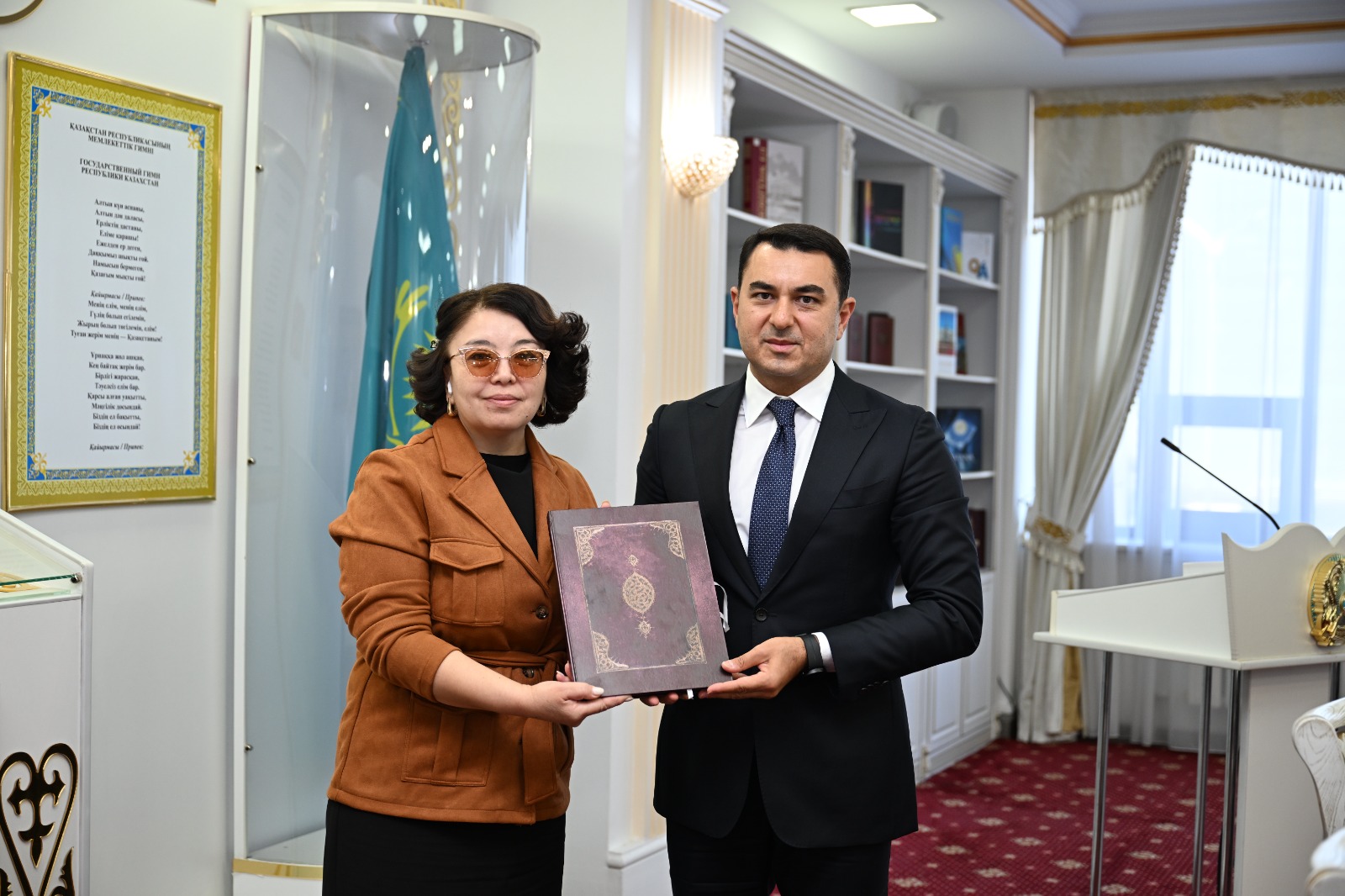 Sonda Azərbaycanın mədəniyyət naziri Adil Kərimli Məhəmməd Füzulinin "Bəngü-Badə" əsərinin əlyazmasının surətini, Xalq yazıçısı Elmira Axundova isə müəllifi olduğu kitablardan bir neçə nüsxə Qazaxıstan Respublikasının Milli Akademik Kitabxanasına hədiyyə ediblər.
