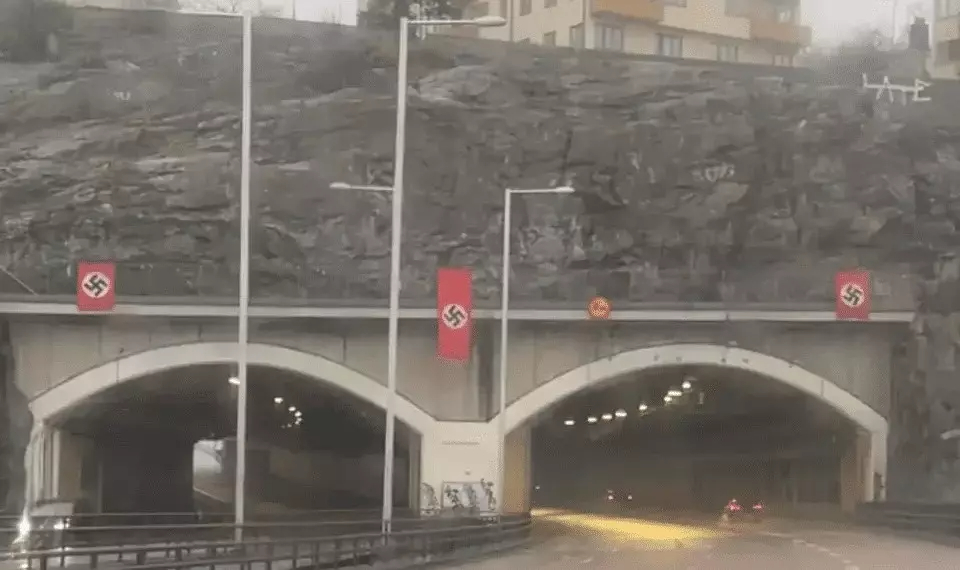 Nasist Almaniyasının lideri Adolf Hitlerin doğum günündə İsveçin paytaxtı Stokholmda bir tunelin girişində naməlum şəxslər tərəfindən üzərində svastika olan üç nasist bayrağı asılıb.