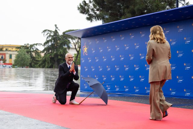 Albaniya Baş naziri İtaliyanın Baş naziri Ciorcia Meloninin qarşısında diz çökdü