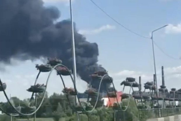 Teleqraf xarici KİV-ə istinadla xəbər verir ki, zavodun vurulmasından sonra sənaye zonasında qalın qara tüstü müşahidə olunub.