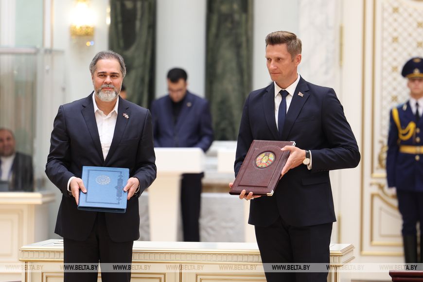 Məsud Pezeşkianın Belarusa səfəri çərçivəsində iki ölkənin yüksək səviyyəli rəsmiləri prezidentlərin iştirakı ilə siyasət, beynəlxalq hüquq, turizm, mədəniyyət, media, səhiyyə, əczaçılıq, sənaye, ətraf mühit, sənaye və xüsusi iqtisadi zonalar, habelə investisiyalar sahələrində əməkdaşlığa dair 12 sənəd imzalayıblar.