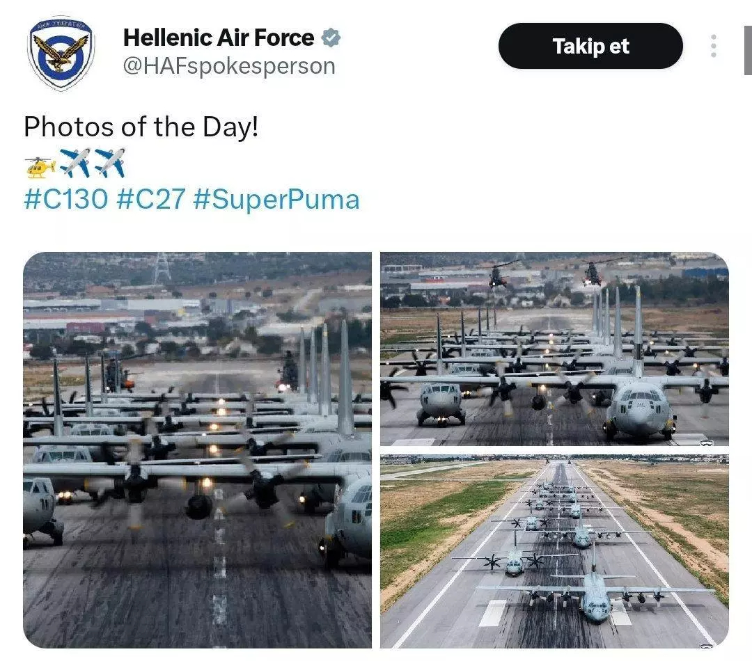 Teleqraf xəbər verir ki, Yunanıstan HHQ C130 təyyarəsinin olduğu şəkli “Günün fotosu” qeydi ilə paylaşıb.