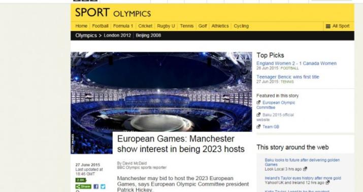 Mançester “Avropa Oyunları-2023”-ə ev sahibliyi etmək üçün namizədliyini irəli sürə bilər.