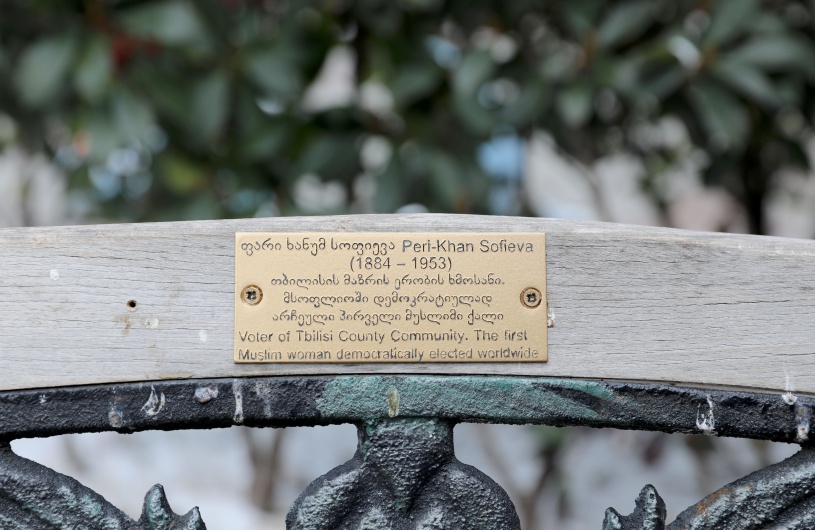 2021-ci ilin fevralında Tbilisi sakrebulosu (şəhər şurası) sədrinin müavini Marika Darçiyanın təşəbbüsü ilə həyata keçirilmiş “Tbilisinin xatirə skamyaları” adlı layihə çərçivəsində oturacaqlardan birinə Pərixanım Sofiyevaya həsr olunan lövhə bərkidilmişdi. Lövhədə P.Sofiyevanın dünyada demokratik yolla seçilən ilk müsəlman qadın olması barədə gürcü və ingilis dillərində məlumat yazılmışdı. Gürcücə Pəri xanım yazılsa da, ingilis dilində Pəri-Xan qeyd olunmuşdu.