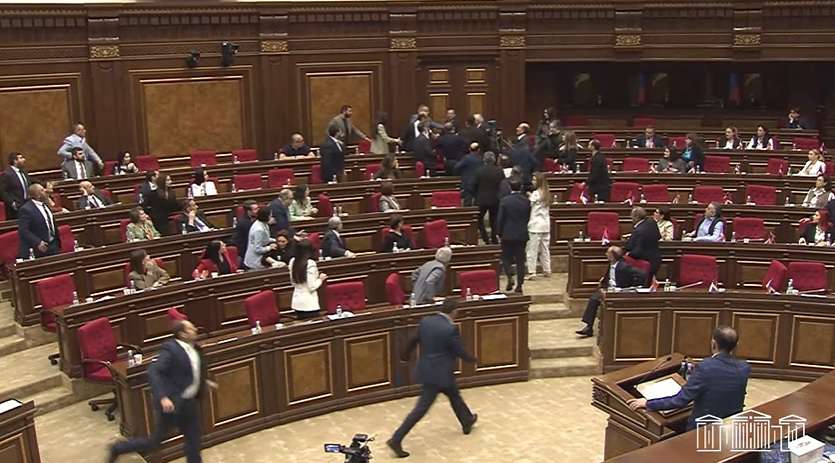 Ardınca “Vətəndaş Müqaviləsi” və müxalif “Ermənistan” fraksiyasının deputatları arasında əlbəyaxa dava düşüb. Əvvəlcə Vahe Qalumyanla Qeqam Manukyan arasında əlbəyaxa dava olub, sonra digər deputatlar müdaxilə ediblər.