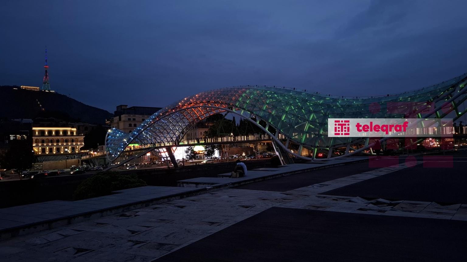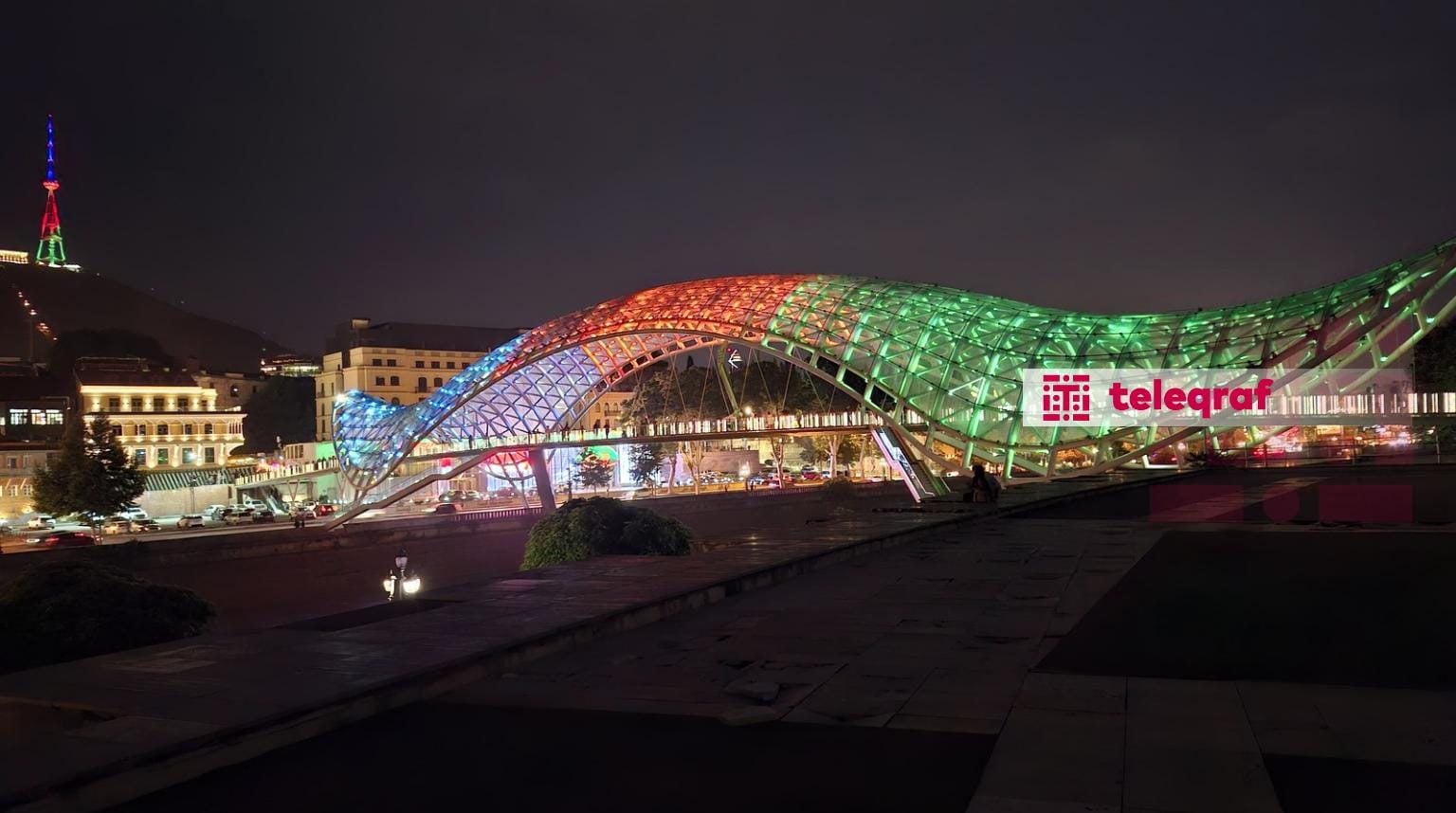 Gürcüstanın paytaxtı Tbilisi şəhərinin əsas rəmzlərindən olan televiziya qülləsi və “Sülh körpüsü” Azərbaycan bayrağının rəngləri ilə işıqlandırılıb.