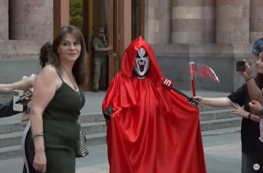 “Ölüm mələyi” libası geyinmiş aksiyanın təşkilatçısı (adı açıqlanmır) hamını bu mübarizəyə qoşulmağa çağırıb: