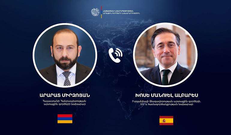 Ermənistan xarici işlər naziri Ararat Mirzoyan İspaniya xarici işlər, Avropa İttifaqı və əməkdaşlıq naziri Xose Manuel Alvares ilə telefon danışığı aparıb.