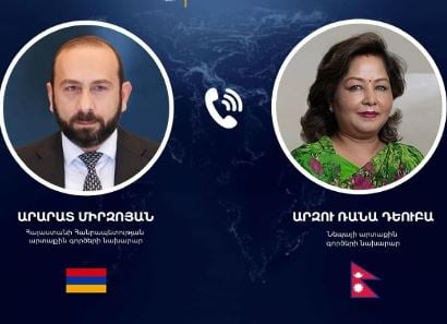 Ermənistanın xarici işlər naziri Ararat Mirzoyan ilə nepallı həmkarı Arzu Rana Deuba arasında telefon danışığı olub.