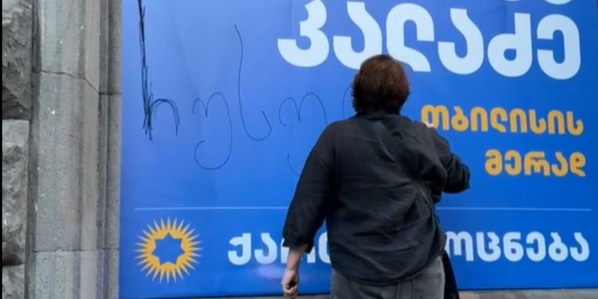 Teleqraf-ın yerli bürosu xəbər verir ki, siyasətçi Tbilisi meri vəzifəsinə namizəd Kaxa Kaladzenin seçki qərargahındakı baneri zədələməkdə ittiham edilir.