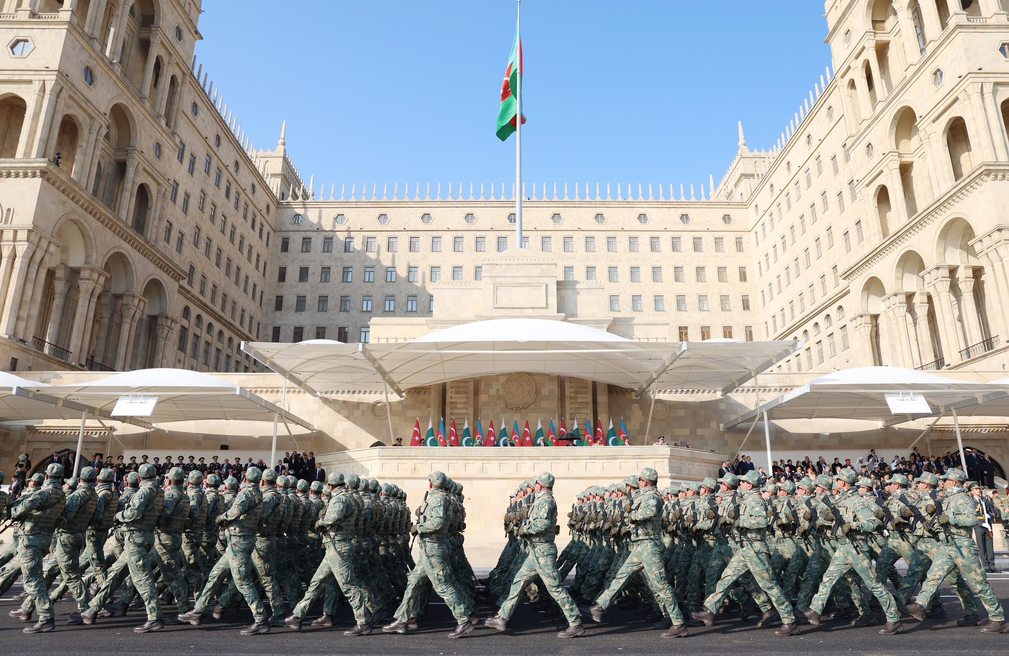 Teleqraf xəbər verir ki, paradda Azərbaycan Prezidenti İlham Əliyev, Türkiyə Prezidenti Rəcəb Tayyib Ərdoğan və Pakistan Baş naziri Şahbaz Şərif iştirak edib.
