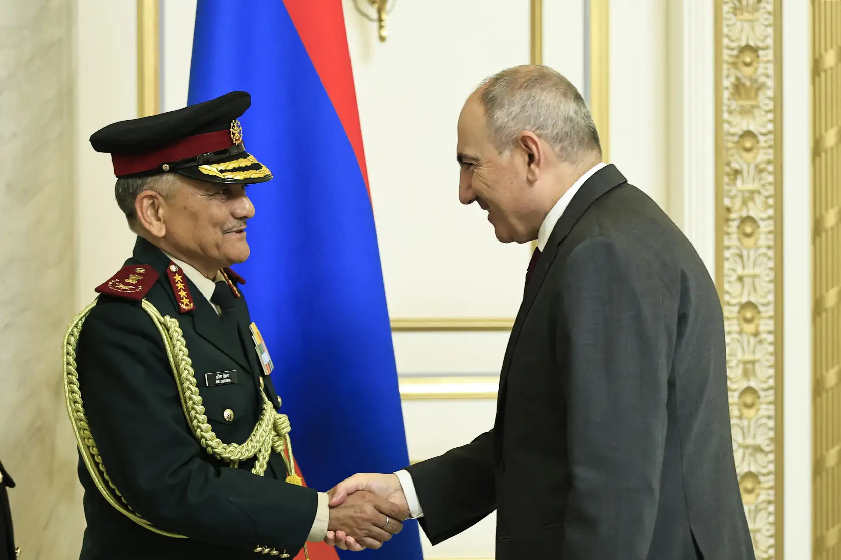 Ermənistan Baş naziri Nikol Paşinyan ölkəsində rəsmi səfərdə olan Hindistan Silahlı Qüvvələrinin Baş Qərargah rəisi general Anil Çauxanın rəhbərlik etdiyi nümayəndə heyətini qəbul edib.