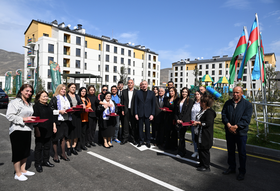 Prezident İlham Əliyev: Sağ olun, çox sağ olun, bir daha təbrik edirəm, salamat qalın, xoşbəxt yaşayın burada. Sağ olun.