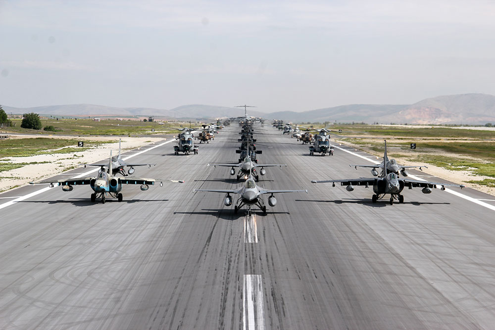Beynəlxalq təlimdə iştirak edən müxtəlif ölkələrin təyyarələri birlikdə "fil yürüşü" ediblər. Sonra iştirakçılar uçuş tapşırıqlarının yerinə yetiriləcəyi rayonlara baxış keçiriblər.
