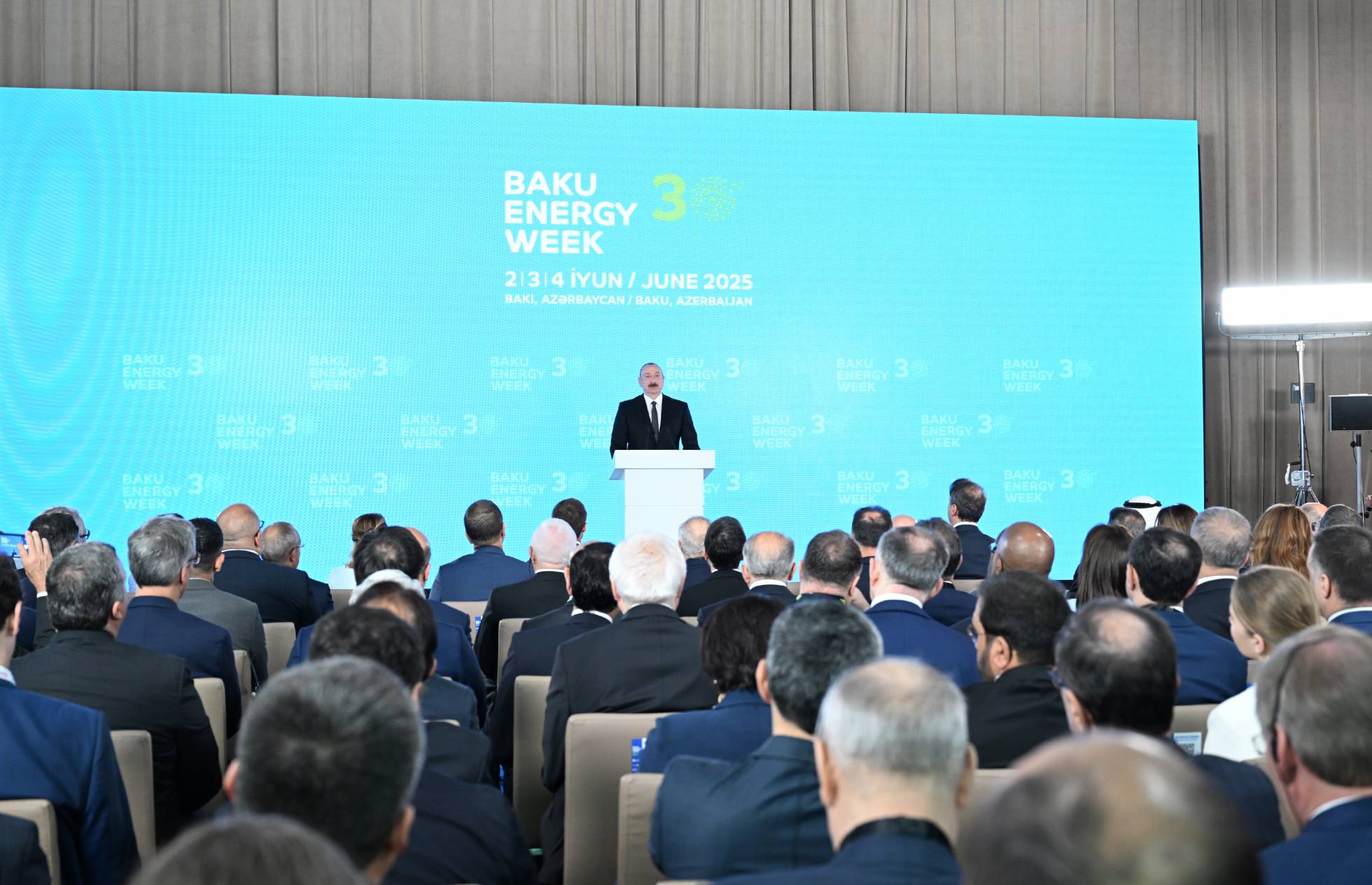 Azərbaycan Prezidenti İlham Əliyev Bakı Ekspo Mərkəzində Bakı Enerji Həftəsi çərçivəsində keçirilən 30-cu Yubiley Beynəlxalq Xəzər Neft və Qaz Sərgisi “Caspian Oil and Gas”, 13-cü Xəzər Beynəlxalq Energetika və Yaşıl Enerji Sərgisi “Caspian Power” və 30-cu Yubiley “Baku Energy Forum”un rəsmi açılış mərasimində çıxış edib.