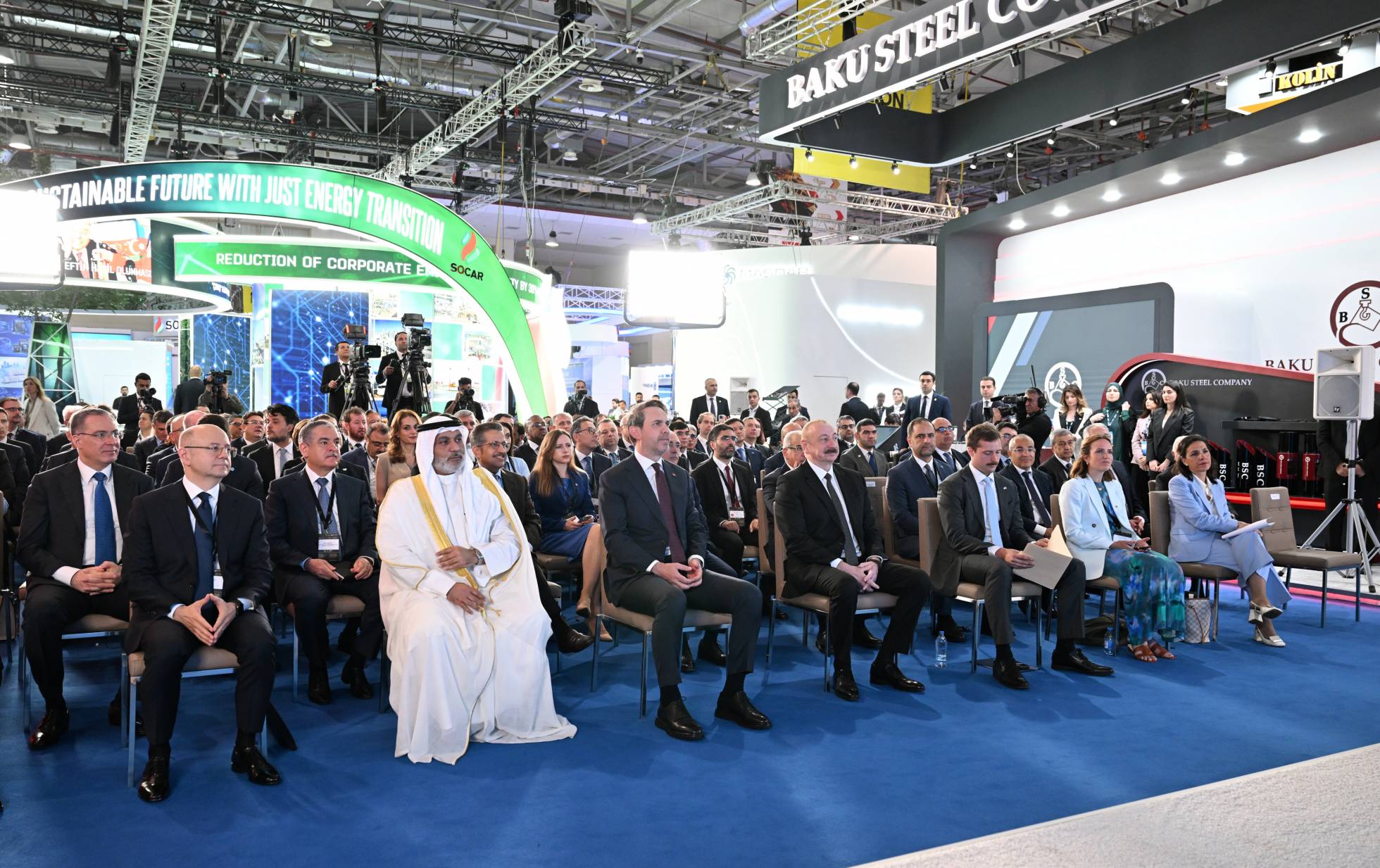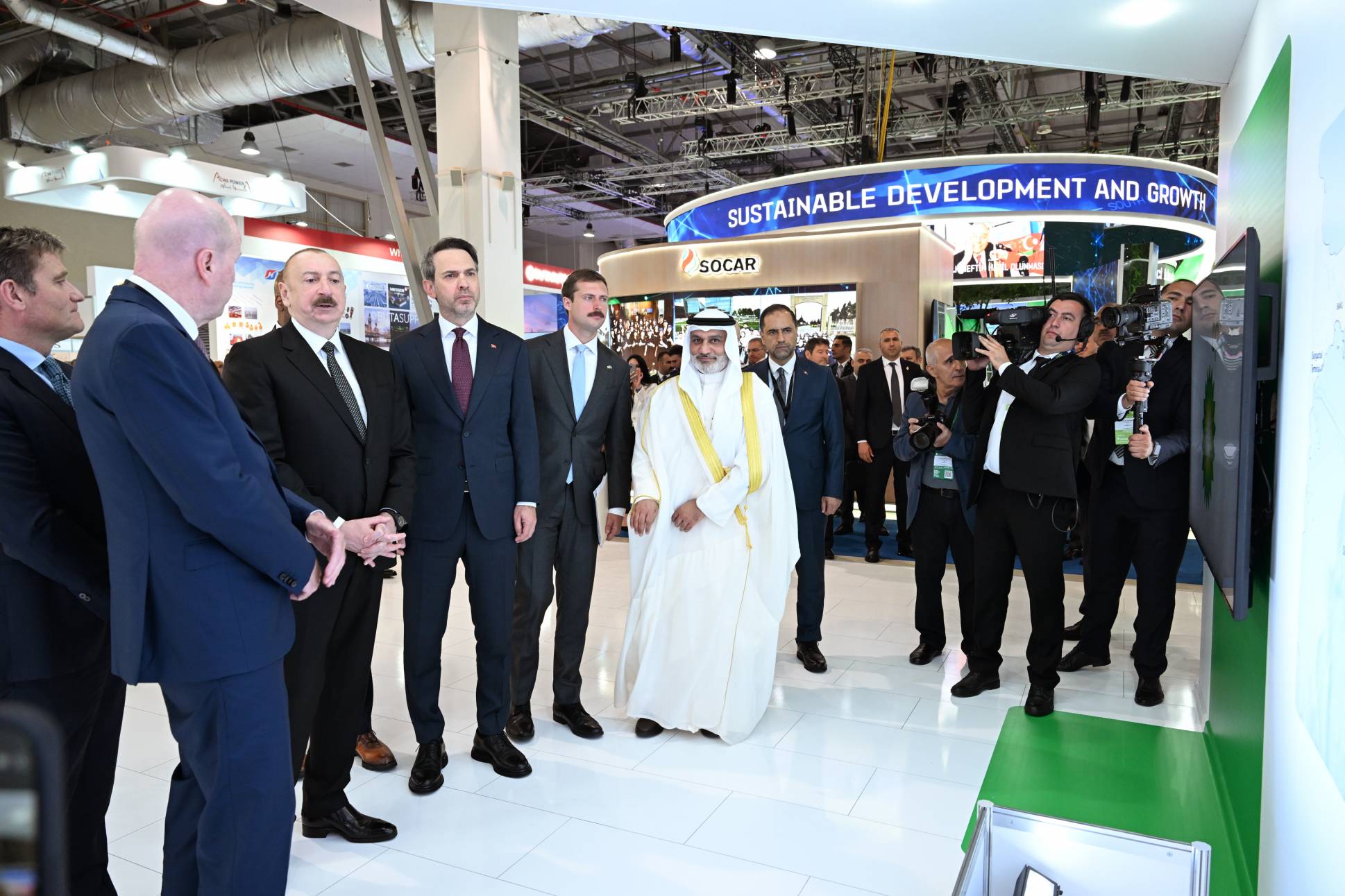 Dövlətimizin başçısı əvvəlcə Azərbaycanın və strateji tərəfdaşlarının enerji təhlükəsizliyinə mühüm töhfə verən SOCAR-ın stendinə baxdı. Bildirildi ki, SOCAR qlobal enerji şirkəti olaraq milli sərvətlərimizin beynəlxalq bazarlara çıxarılmasında strateji rol oynayır. Neft-qaz şirkətindən beynəlxalq enerji şirkətinə transformasiya istiqamətində məqsədyönlü fəaliyyətini davam etdirən SOCAR keyfiyyətli idarəetmə, şəffaflıq və müasir yanaşmalar əsasında enerji sektorundakı mövqeyini ardıcıl olaraq möhkəmləndirir. Axtarış-kəşfiyyat, hasilat, nəqletmə, emal, istehsal, marketinq, yanacağın pərakəndə satışı, qaz paylanması və bərpaolunan enerji mənbələrinin inkişafı kimi sahələrdə uğurla fəaliyyət göstərən şirkət rəqəmsallaşma, innovasiya, yaşıl enerjiyə keçid vasitəsilə davamlı inkişafı və dayanıqlı artımı təşviq edir. SOCAR, həmçinin iqlim dəyişikliyi ilə mübarizədə fəal iştirak edərək, ekoloji cəhətdən təmiz, aşağıkarbonlu və qabaqcıl texnologiyaların tətbiqinə üstünlük verir.