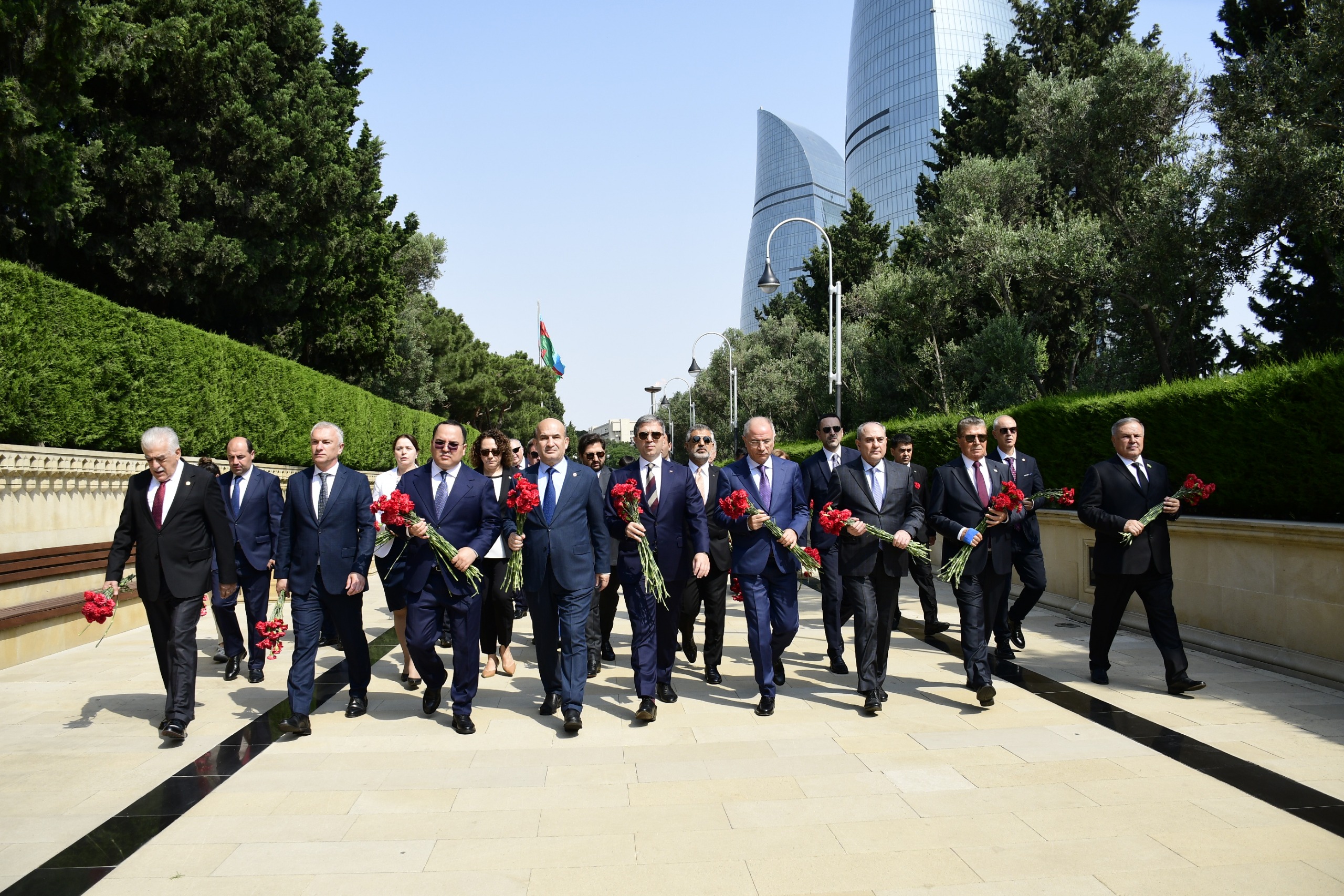 Sonra konfrans iştirakçıları Şəhidlər xiyabanını ziyarət ediblər. Azərbaycanın azadlığı və müstəqilliyi uğrunda mübarizədə canlarını qurban vermiş qəhrəman Vətən övladlarının xatirəsi ehtiramla yad edilib, məzarları üzərinə tər güllər düzülüb, “Əbədi məşəl” abidəsinin önünə əklil qoyulub.