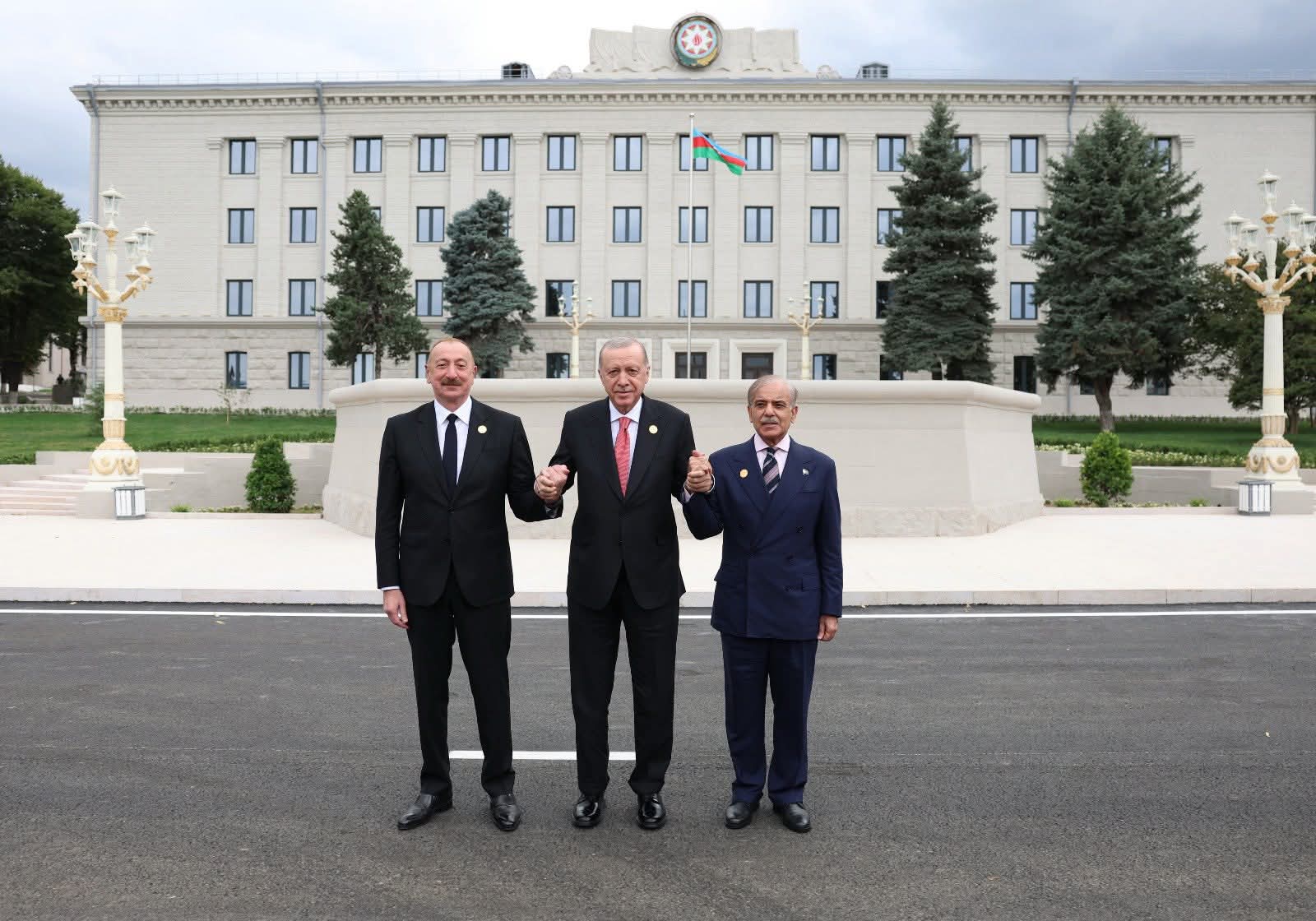 Azərbaycan Prezidenti İlham Əliyev, Türkiyə Prezidenti Rəcəb Tayyib Ərdoğan və Pakistanın Baş naziri Məhəmməd Pərviz Şərif Xankəndi şəhərində, Ağdərə və Xocalı rayonlarında Azərbaycan Respublikası Prezidentinin xüsusi nümayəndəliyinin inzibati binasının qarşısında bir araya gəliblər.