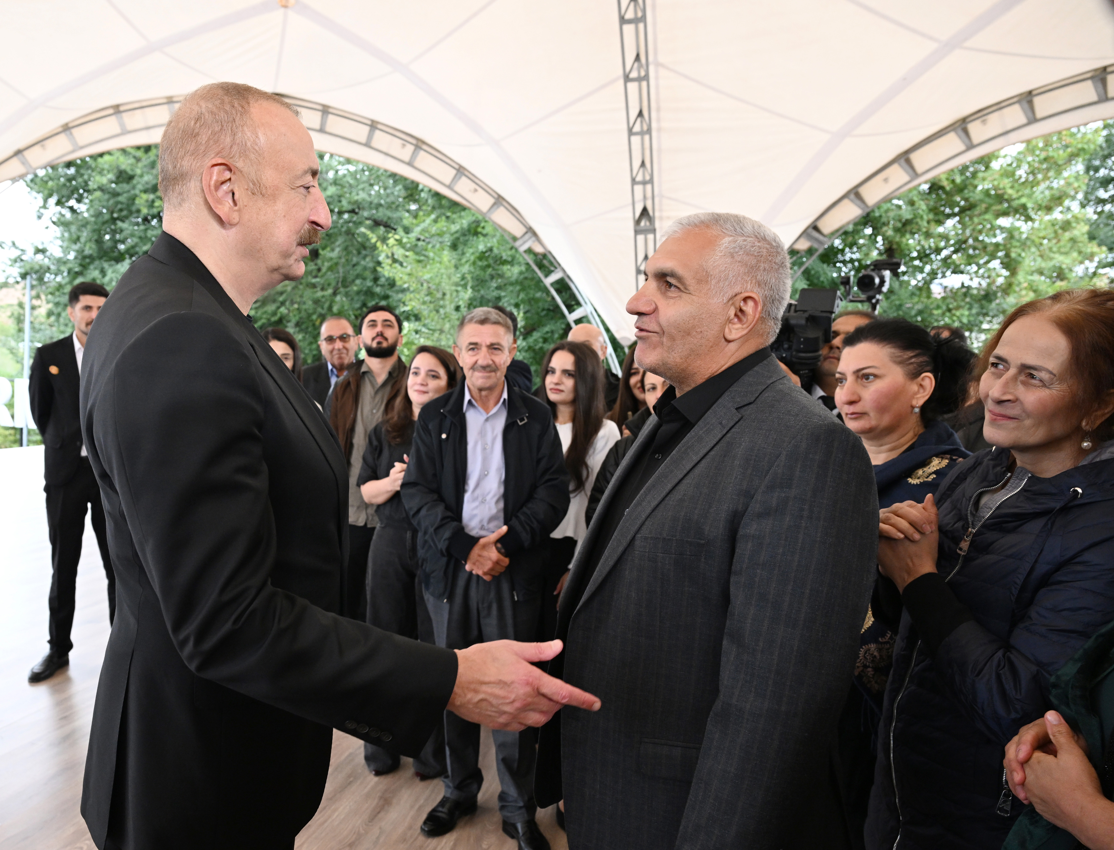 Bu gün biz bu gözəl Qarabağ diyarında yığışmışıq. Bunun əsas səbəbi xalqımızın birliyidir və gənc nəslin vətənpərvərlik ruhunda tərbiyə almasıdır. Biz bütün dünyaya sübut etmişik ki, güclü xalqıq, iradəli xalqıq, döyüş meydanında da qələbə qazanmışıq, sülhə də hər zaman hazır idik. Amma sülh ədalətli sülh olmalı idi, beynəlxalq hüquq və tarixi ədalət üzərində sülh olmalı idi. Son beş ilin tarixi onu göstərdi ki, heç bir xarici qüvvə bizim iradəmizə təsir edə bilmədi. 2023-cü ilin sentyabr hadisələri, antiterror əməliyyatı bir daha göstərdi ki, heç kim bizim qabağımızda dura bilməz. Çünki bizim işimiz haqq işidir, biz öz torpağımız uğrunda vuruşmuşuq, bizim başqa ölkələrin torpağında gözümüz yoxdur, amma öz torpağımızdan bir qarış belə heç kimə güzəştə gedən deyilik və bunu sübut etmişik. Bu gün bütün dünya Azərbaycan xalqını haqlı olaraq müzəffər xalq kimi tanıyır. 44 gün və bir gün - heç bir ölkə son 80 il ərzində belə mütləq, tam və ədalətli qələbə qazanmamışdır. Bununla fəxr edirik. Fəxr edirik, necə ki, müharibədə döyüşmüşük, vuruşmuşuq, eləcə də sülh şəraitində qurub-yaradırıq. Ermənilər bizim torpaqlarımızı viran qoyublar. Sizin yaşadığınız kənd və şəhərləri yerlə-yeksan etmişdilər. Özlərinin yaşadıqları şərait elə idi ki, necə deyərlər, özünə hörmət edən insan heç vaxt orada yaşamazdı. Amma görün, biz beş il ərzində şəhərlər, kəndlər, körpülər, tunellər, su anbarları, elektrik stansiyaları qurmuşuq. Yəni, burada – Qarabağda və Zəngəzurda gedən quruculuq dünyanın heç bir yerində yoxdur. Əsas odur ki, Azərbaycan xalqı rahat yaşasın, xoşbəxt yaşasın, sülh içində yaşasın. Sizi təbrik edirəm.