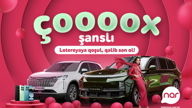 Sərfəli mobil operator “Nar” ilsonunda abunəçilərinə sevinc bəxş etmək üçün onları möhtəşəm hədiyyələrlə dolu “Çoox Şanslı” lotereyasına qoşulmağa dəvət edir. 31 dekabra qədər davam edəcək bu xüsusi lotereya çərçivəsində “Nar” istifadəçiləri hər gün “Xiaomi Redmi Note 14 Pro” smartfonu, hər həftə “Haval H6 Ultra” avtomobili və finalda isə “Li L9 Ultra” avtomobilini qazanmaq imkanı əldə edəcəklər.