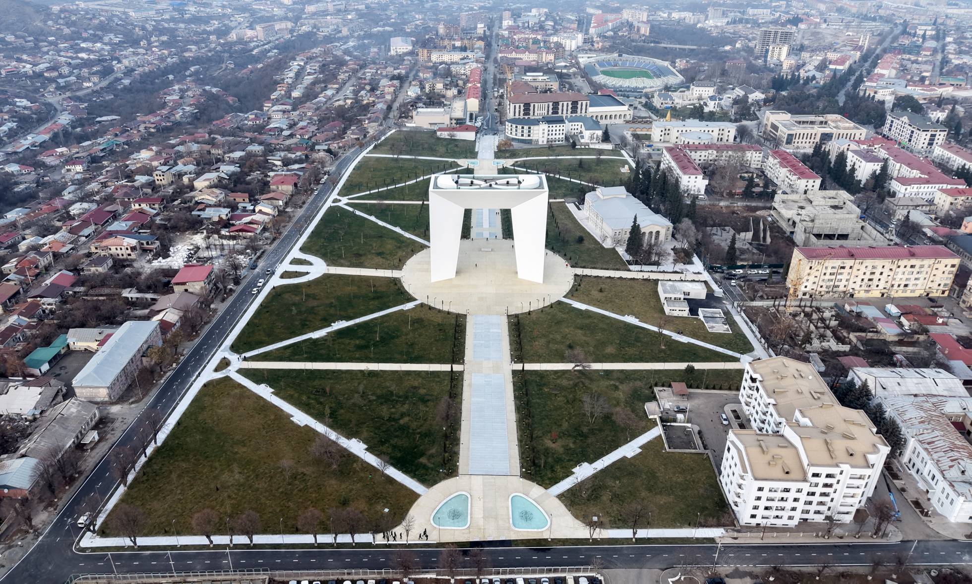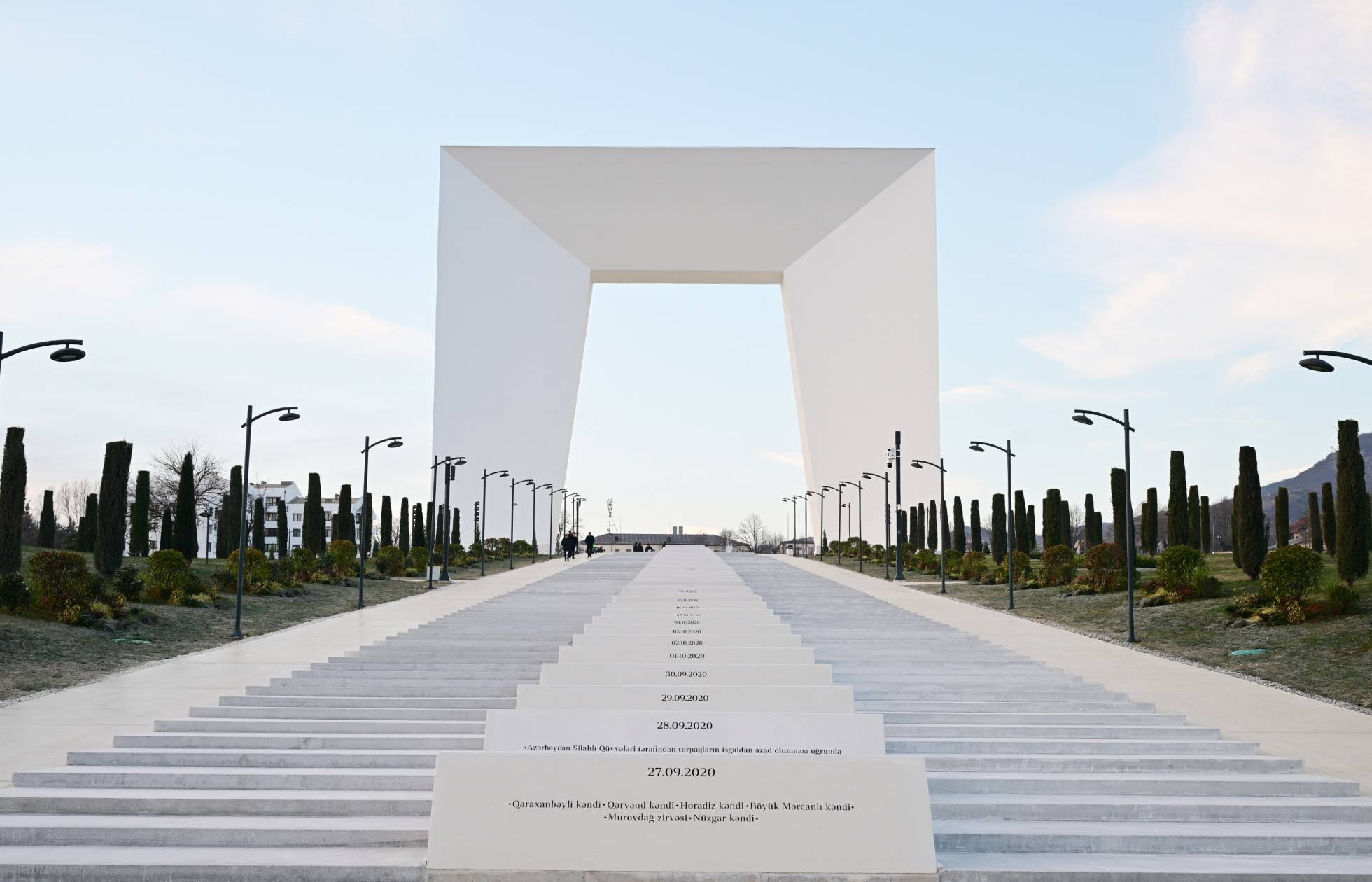 Azərbaycan Respublikasının Prezidenti İlham Əliyev və birinci xanım Mehriban Əliyeva dekabrın 24-də Xankəndi şəhərində Zəfər parkının açılışında iştirak ediblər.